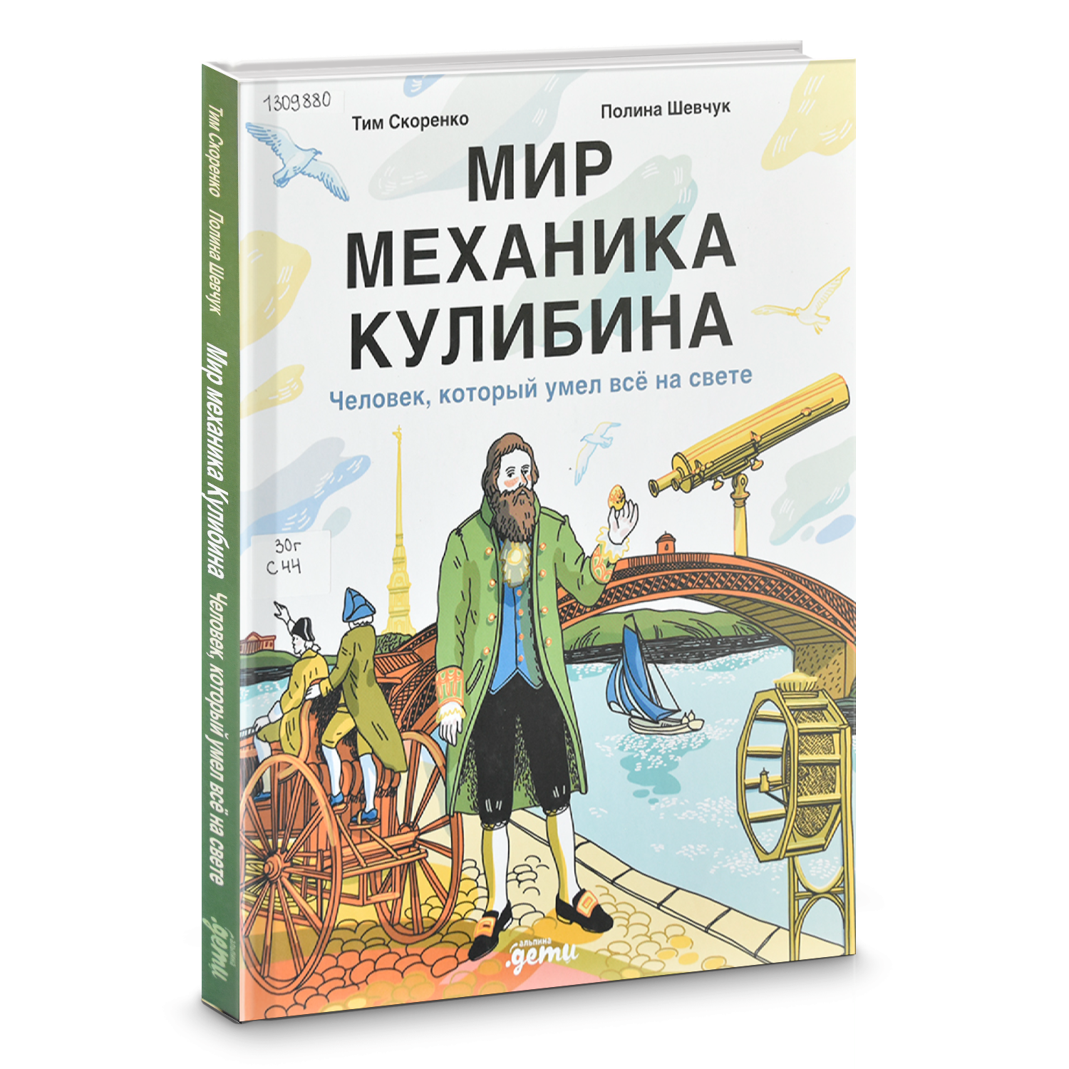 Скоренко, Тим. Мир механика Кулибина. Человек, который умел все на свете : для младшего и среднего школьного возраста / Тим Скоренко, Полина Шевчук. – Москва : Альпина. Дети, 2025. – 53, [5] с. : ил. –(Миры). – ISBN 978-5-9614-9905.