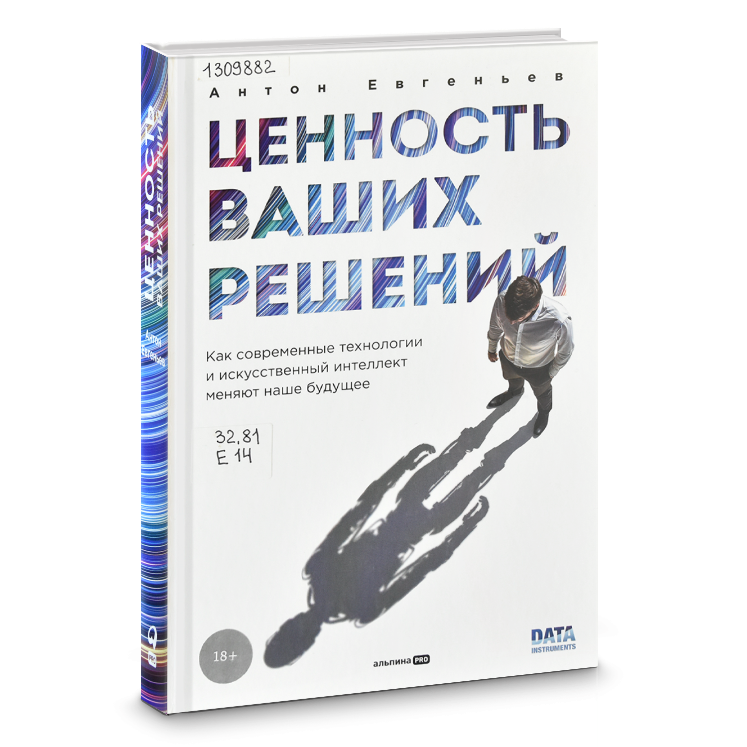 Евгеньев, Антон. Ценность ваших решений. Как современные технологии и искусственный интеллект меняют наше будущее / Антон Евгеньев. – Москва : Альпина ПРО, 2024. – 456 с. : рис., табл. – ISBN 978-5-20600244-7.