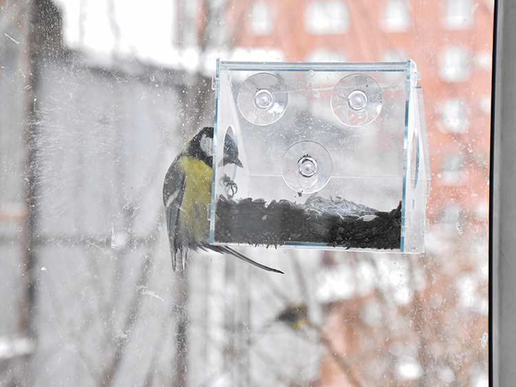 А можно я вас из фоторужья щёлкну? Юговка подкармливает зимующих в городе птах!