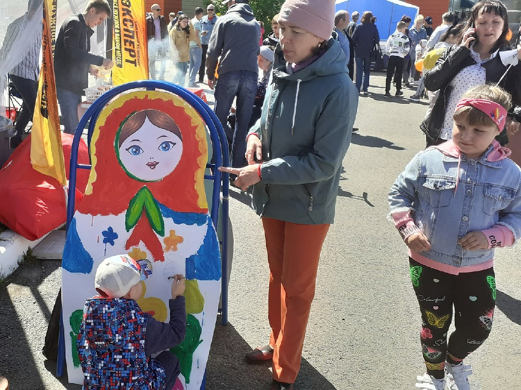 На городской площади в рамках районного праздника сотрудники центральной библиотеки провели мастер-класс по росписи русской матрешки.