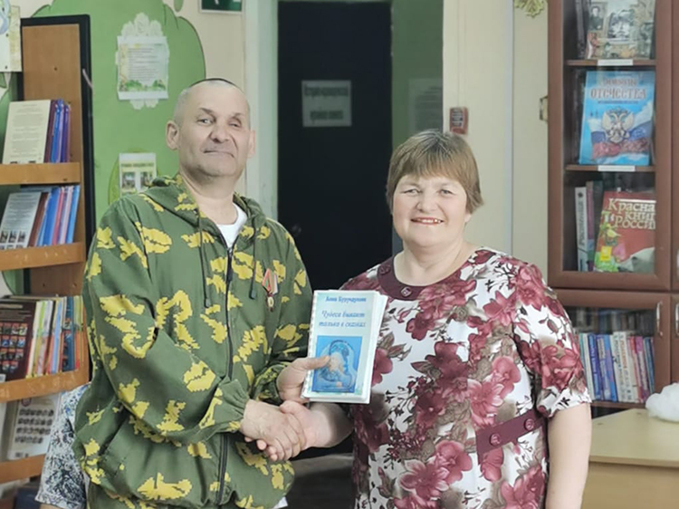 Анна Бурундукова читала свою сказку «Волшебная пыль» и подарила сборники сказок общественной организации «Пограничники Зауралья», на базе которой ребята занимаются театральной подготовкой.