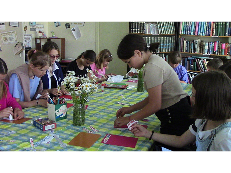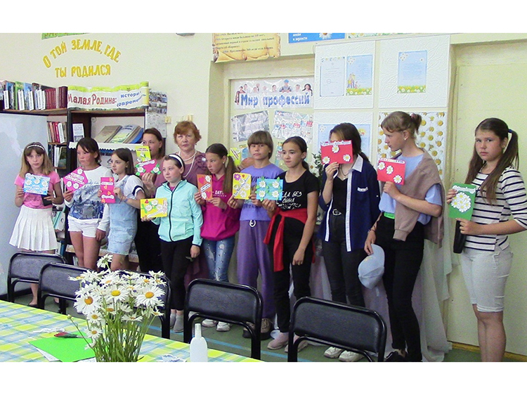 Для гостей праздника провели мастер-класс «Ромашковое настроение» по изготовлению поздравительной открытки ко Дню семьи, любви и верности. Ребята делали свои цветы и с увлечением слушали рассказ библиотекаря об этом замечательном празднике, который отмечается в честь святых Петра и Февронии. На открытках участники написали о том, какой они хотели бы видеть свою семью: дружной, любящей, сплоченной, заботливой…