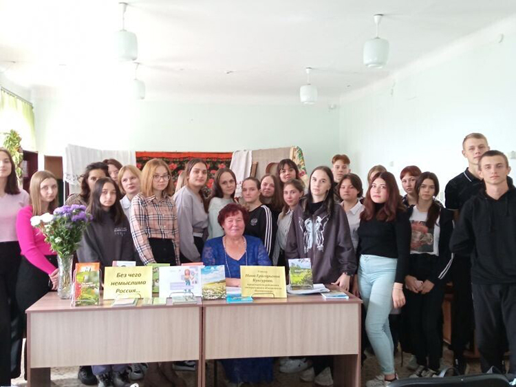 В рамках проекта была проведена литературная встреча «Без чего немыслима Россия…». Перед студентами педагогического колледжа выступила Нина Григорьевна Кунгурова - председатель Куртамышского литературного объединения «Вдохновение».