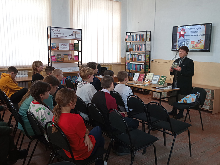 О маленьких героях большой войны поговорили в Центральной библиотеке на уроке мужества, который посетили учащиеся 7 и 8 классов. Ведущие мероприятия рассказали о детях войны, о тяжёлых трудовых буднях в тылу, о том, как маленькие дети наравне с взрослыми ковали долгожданную победу. В рассказ о маленьких героях вплетались стихи о Лёне Голикове, Валентине Котике, Марате Казее, Мише Куприне.