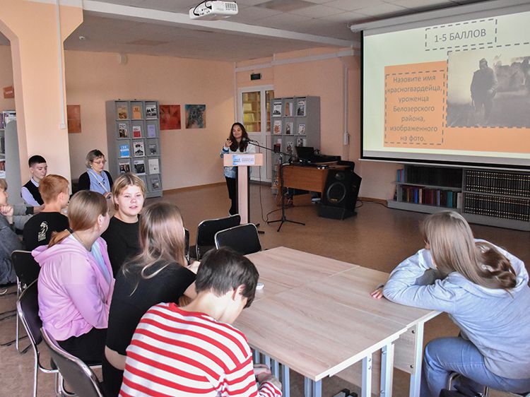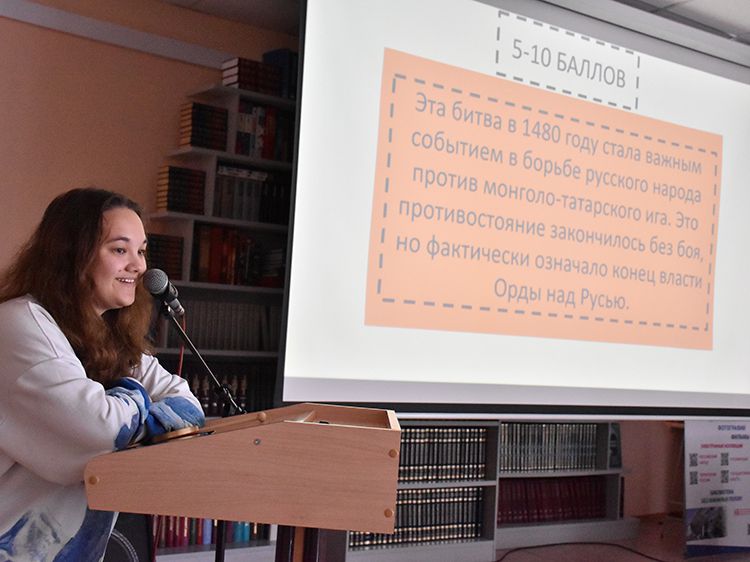 А специалист Регионального центра Президентской библиотеки Александра Белых провела другую познавательную аукцион-игру – «Защитники знаний», где ребята не просто проверяли знания, полученные на уроках истории, но ещё применяли логику и критическое мышление. Участники проходили через несколько тематических блоков. В блоке «Лица» гости Юговки вспоминали биографии выдающихся исторических личностей, сыгравших ключевую роль в отечественной истории. В блоке «Битвы» ребята говорили о знаменитых сражениях, их деталях и значении в истории России. В блоке «Даты» участники отвечали на вопросы о важнейших событиях и точных датах, которые стали поворотными фрагментами в истории государства. И, наконец, блок «Войска» посвящён различным формированиям и их роли в защите страны.