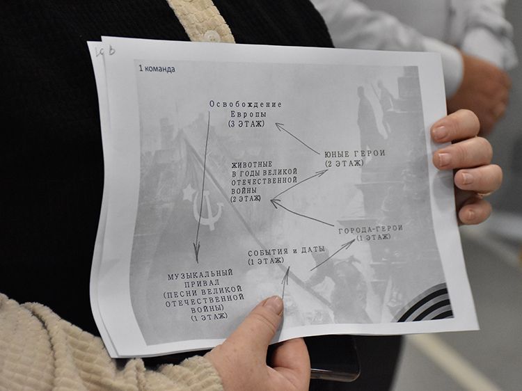 В отделе абонемента школьники квеста узнали, сколько городов-героев в России и какие названия они носили раньше, в зале патентно-технической литературы услышали об изобретателях военной техники и оружии времён Великой Отечественной войны. В отделе литературы на иностранных языках ребят ждало географическое испытание – на карте мира нужно отметить страны, которые участвовали в войне. В отделе краеведческой и редкой книги сотрудники напомнили школьникам о героях-зауральцах, которые сражались на фронте, также вспомнили улицы Кургана, названные в честь земляков-зауральцев. А в зале гуманитарной литературы ребята узнали о юных героях большой войны – советской антифашисткой молодёжной организации «Молодая гвардия».