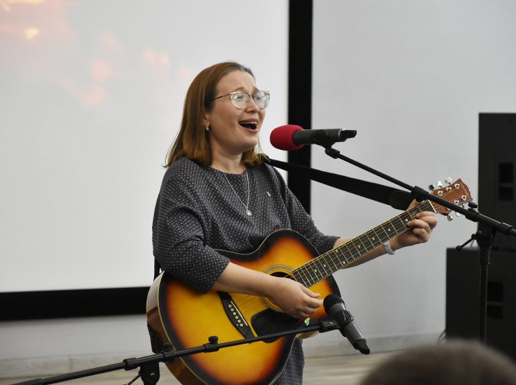 Анатолий Артамонов также сыграл большую роль и в судьбе учеников гимназии № 31. Для фотографа и всех гостей Юговки учитель гимназии Наталья Лобанова выступила с песнями под гитару, которые по традиции поют у костра в походах.