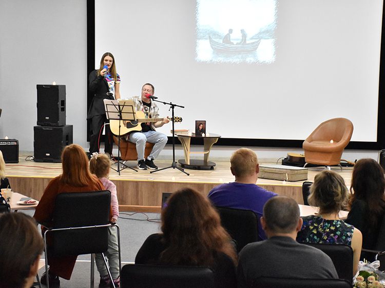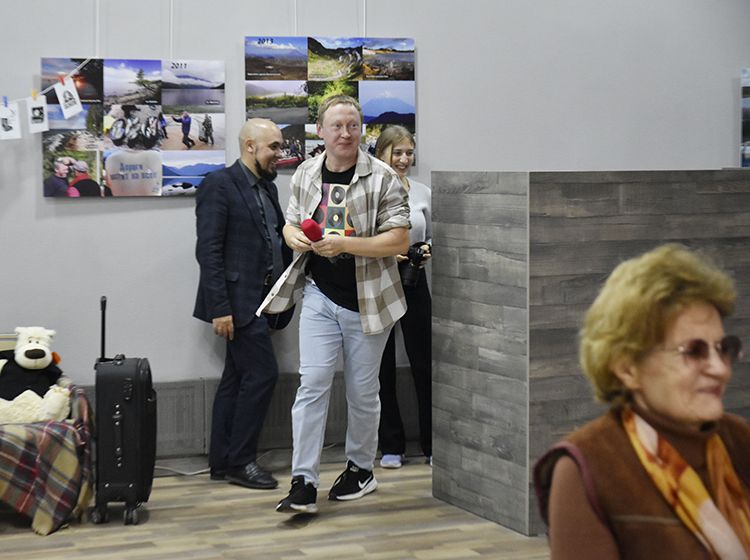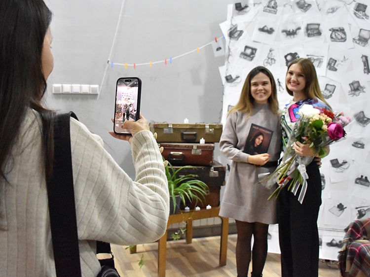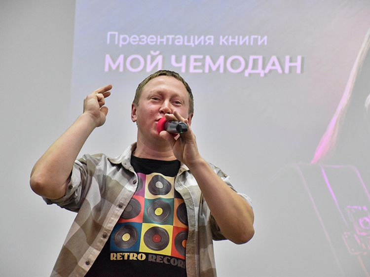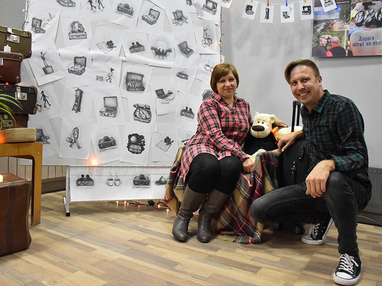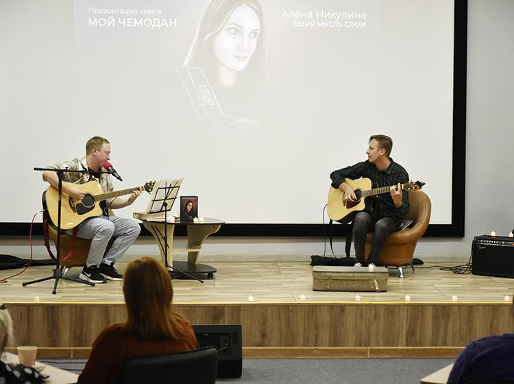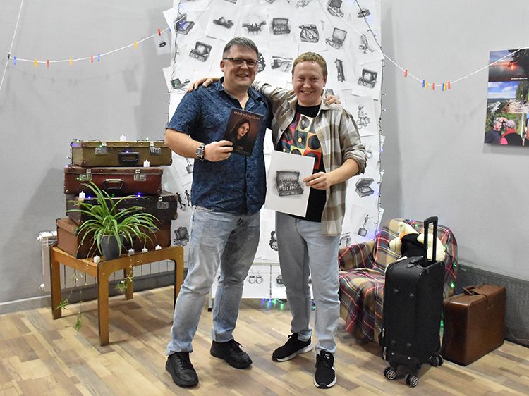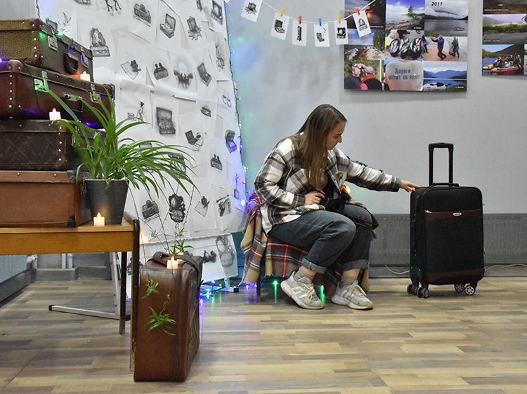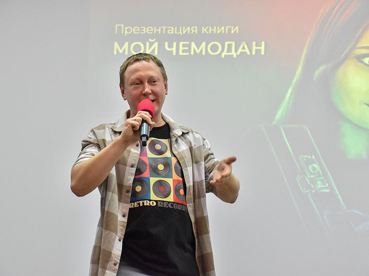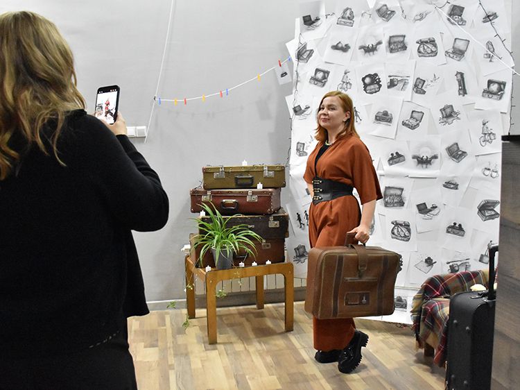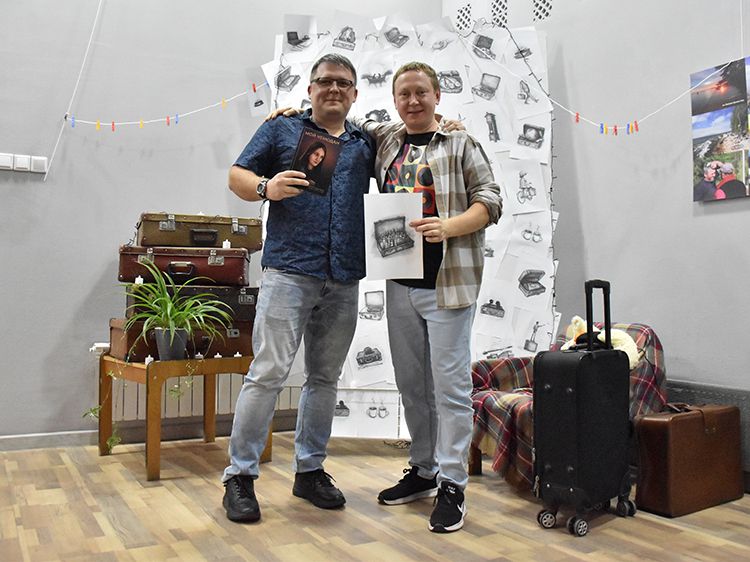 На один вечер концертный зал Юговки превратился в уютное пространство с приглушённым светом и яркой тематической фотозоной. Все желающие отправились в путешествие и сделали фото в тематической локации отпуска «на чемоданах», с иллюстрациями из книги. Их создал супруг Алёны – Илья Никулин: музыкант, участник нескольких курганских коллективов и сотрудник библиотеки имени А. К. Югова.