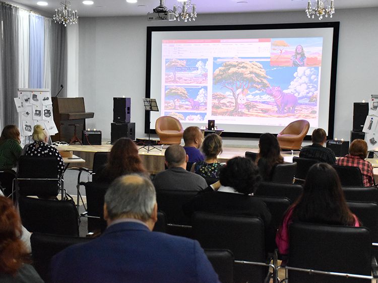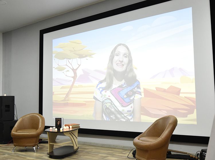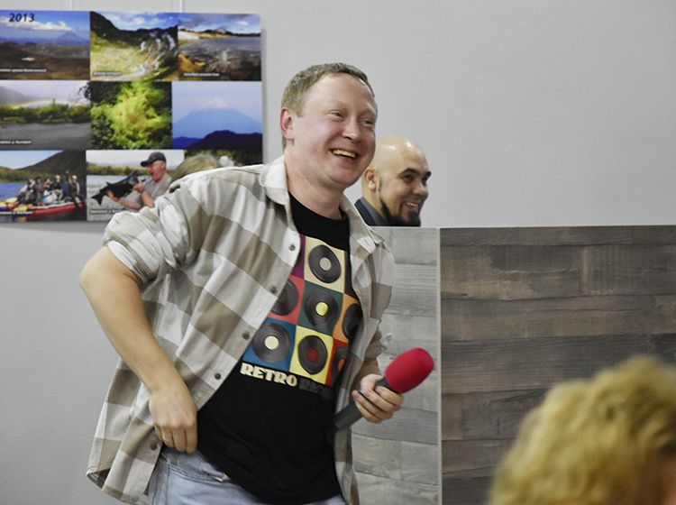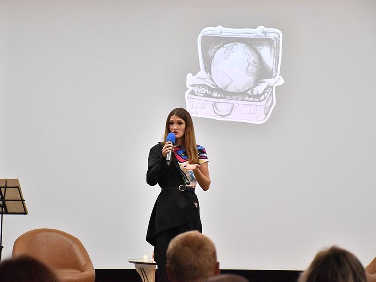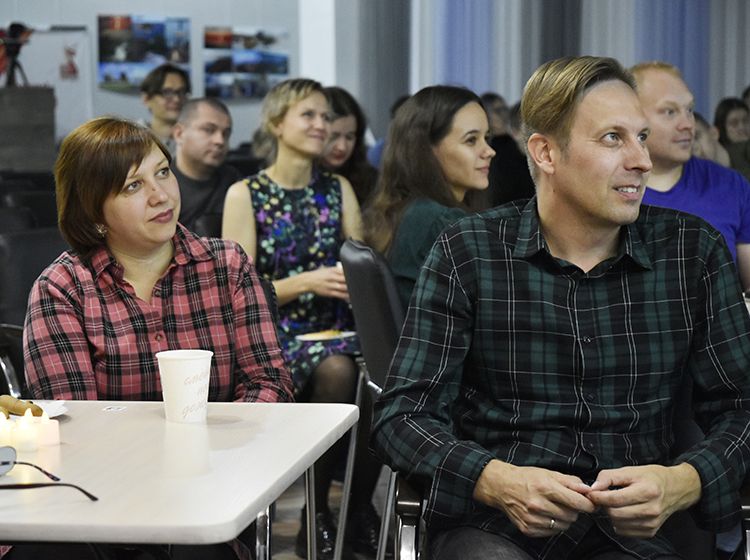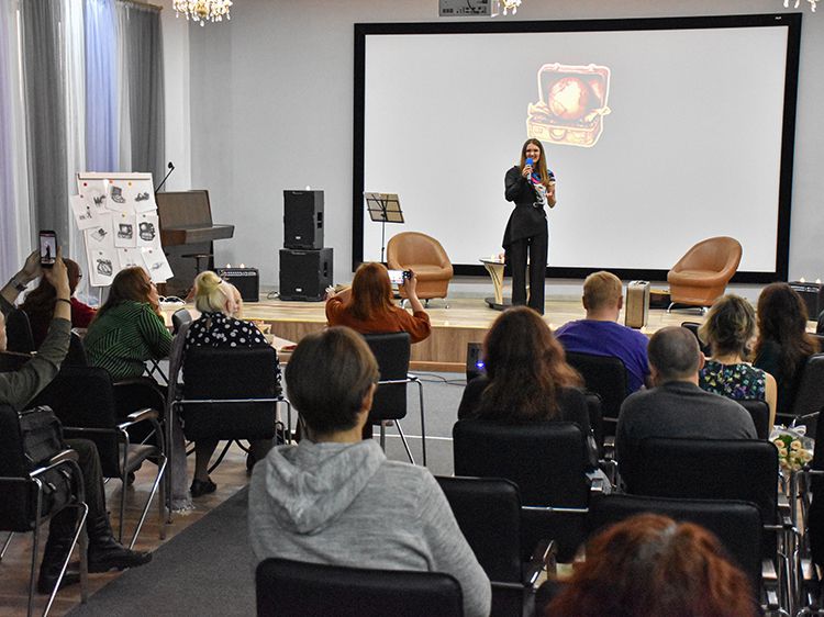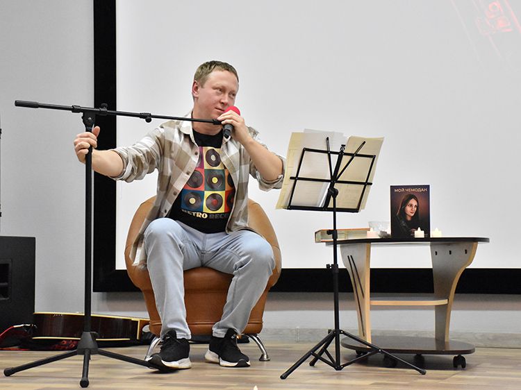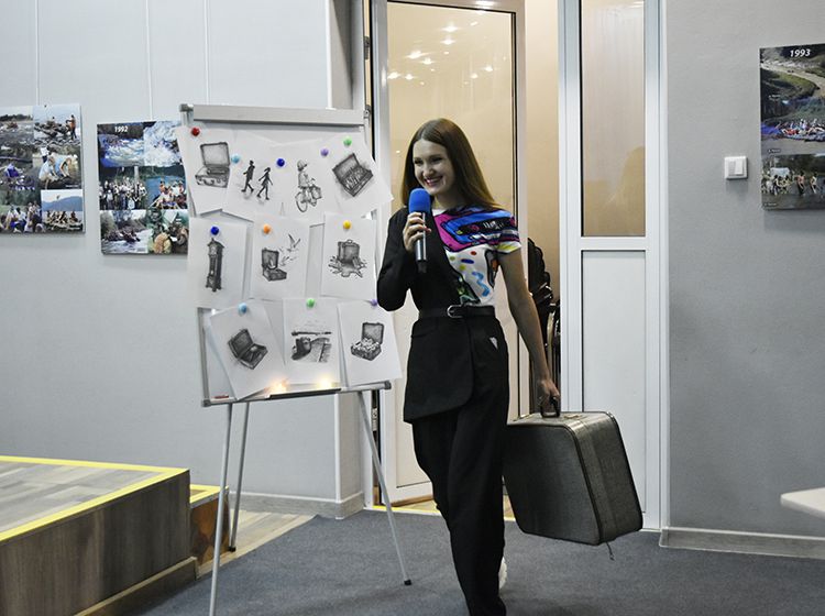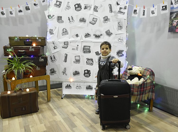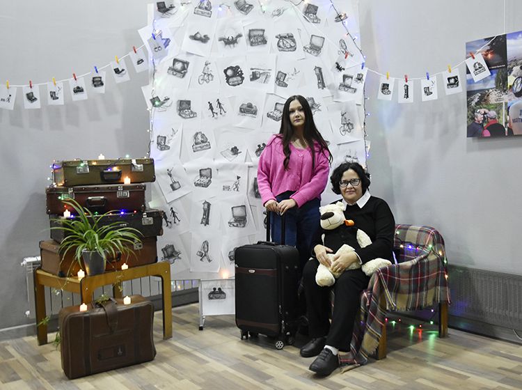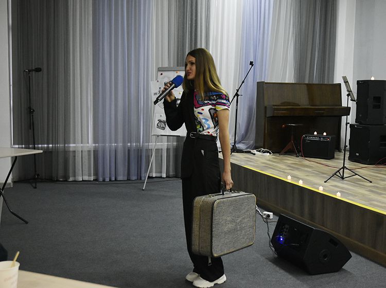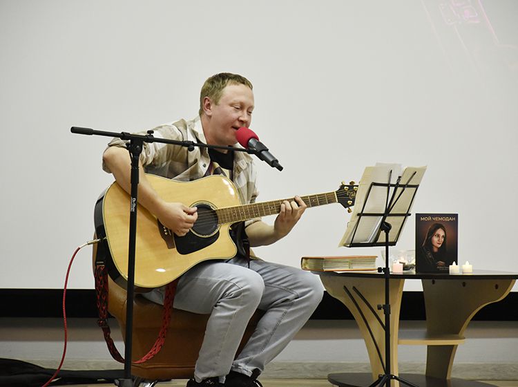 На один вечер концертный зал Юговки превратился в уютное пространство с приглушённым светом и яркой тематической фотозоной. Все желающие отправились в путешествие и сделали фото в тематической локации отпуска «на чемоданах», с иллюстрациями из книги. Их создал супруг Алёны – Илья Никулин: музыкант, участник нескольких курганских коллективов и сотрудник библиотеки имени А. К. Югова.