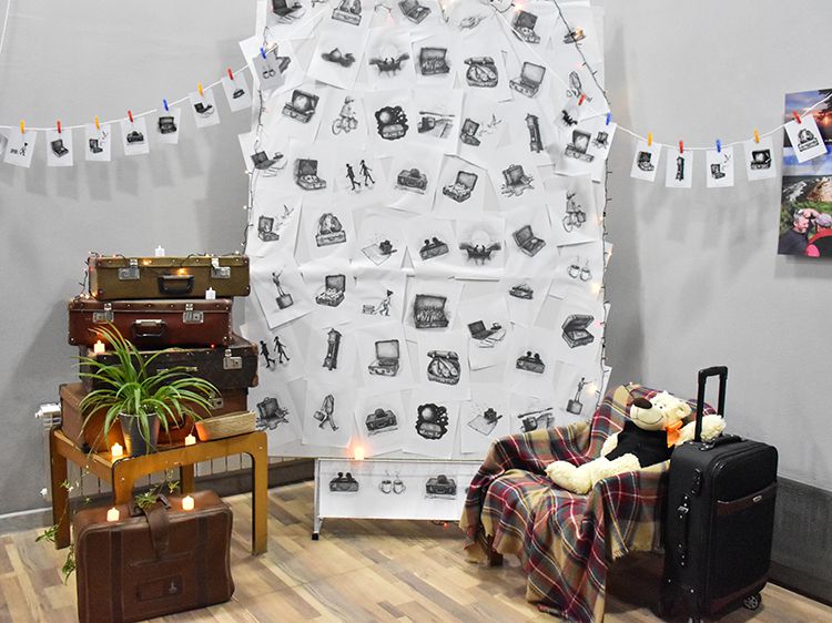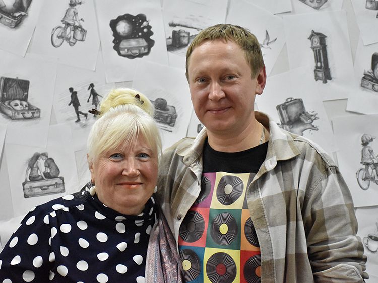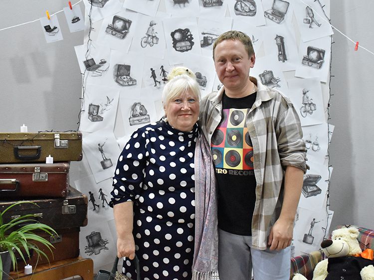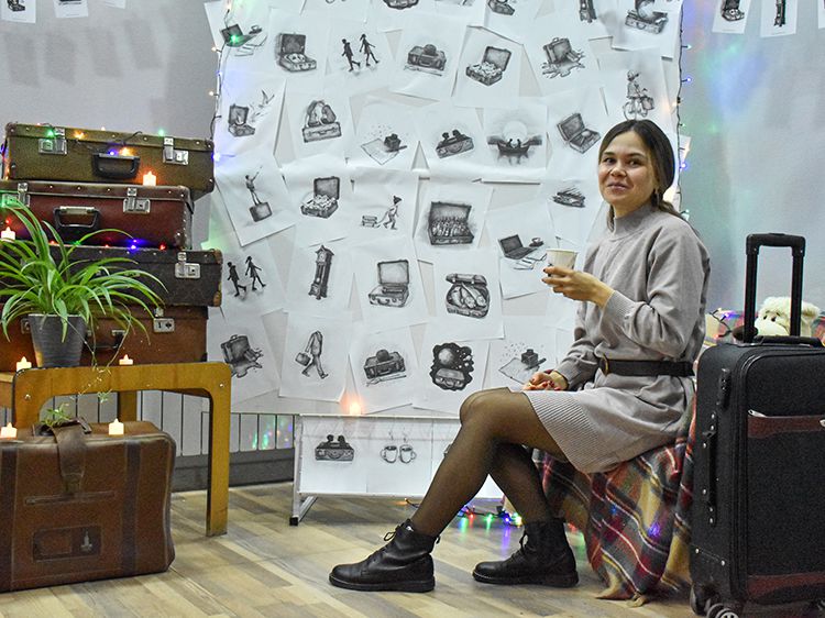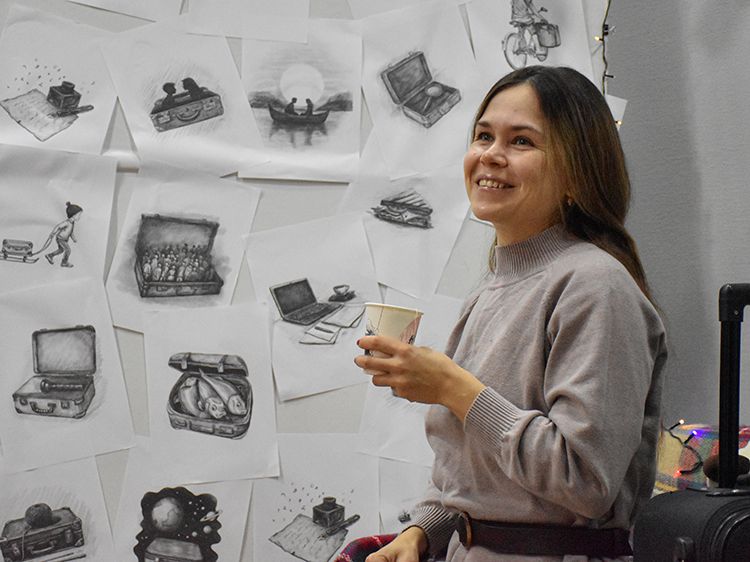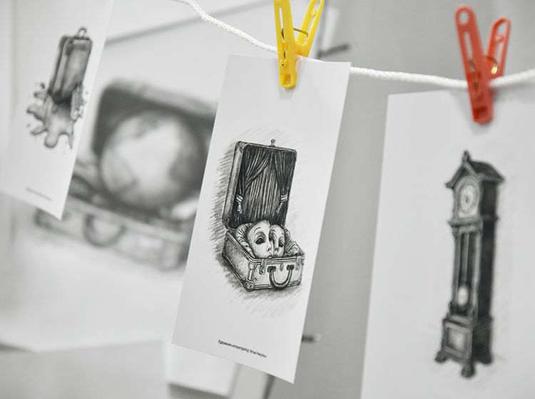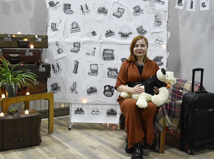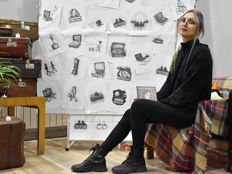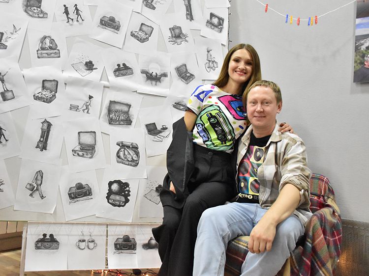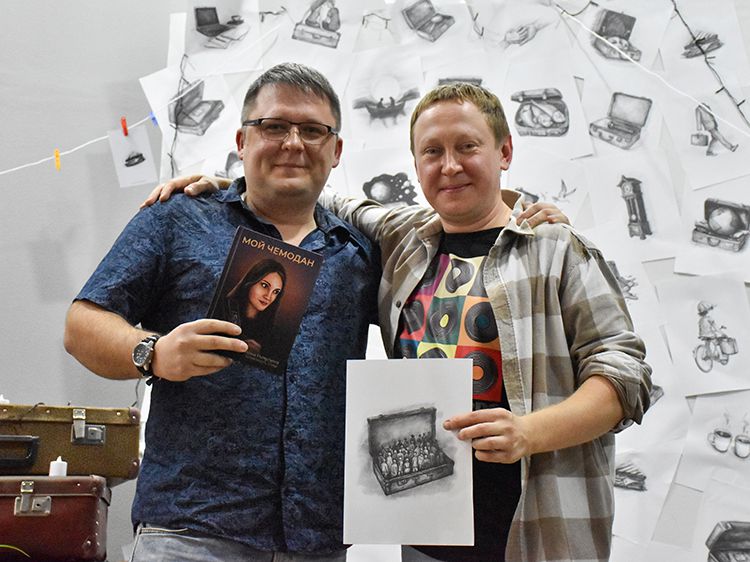 Большой вклад в создание сборника «Мой чемодан» вложил супруг Алёны Илья. Он проиллюстрировал каждое стихотворение минималистичным рисунком. Все его работы можно было увидеть в зале, на открытках.