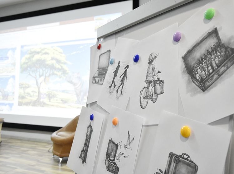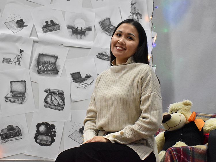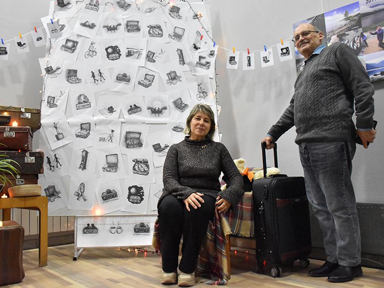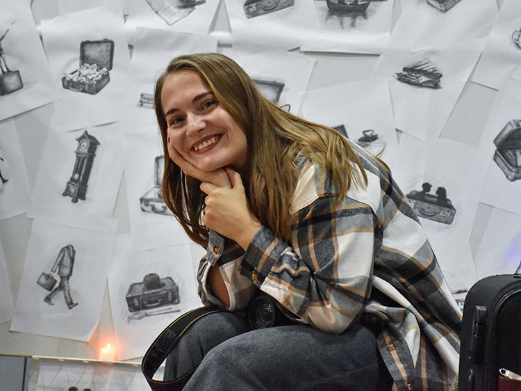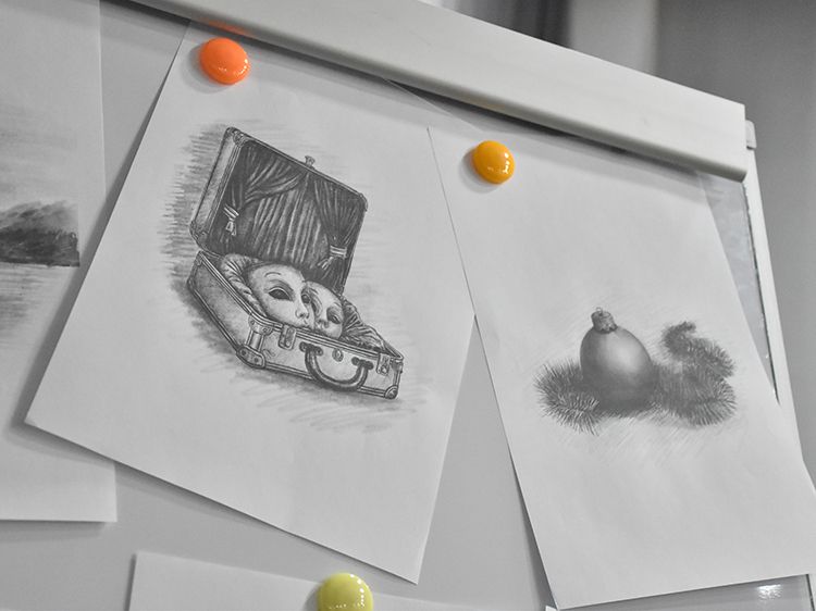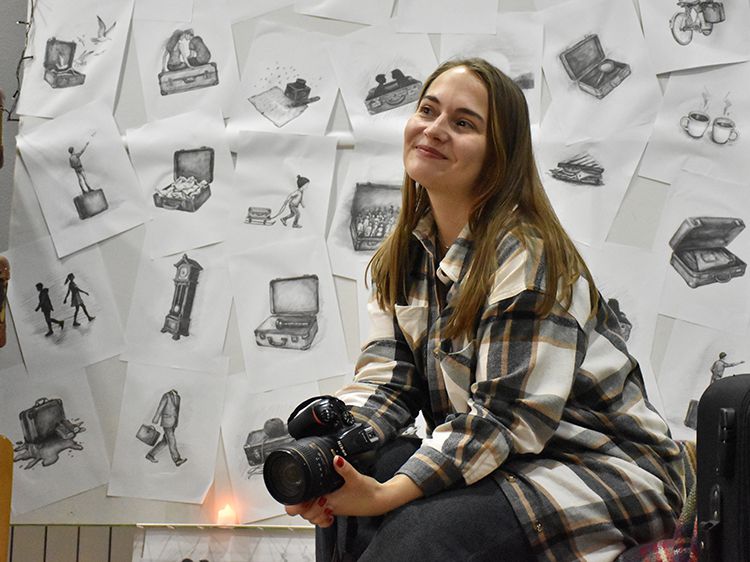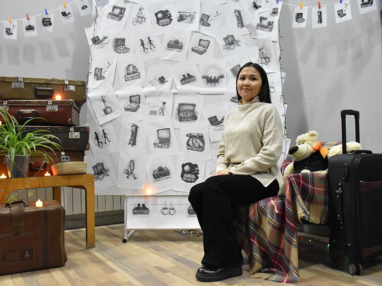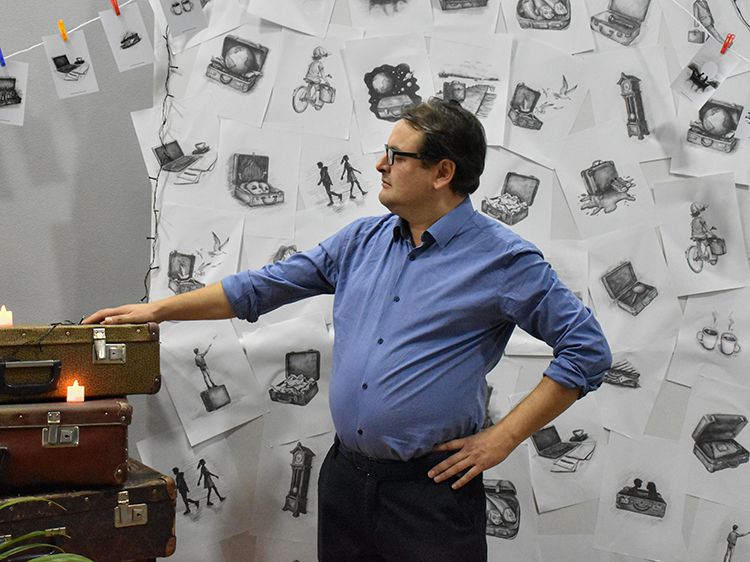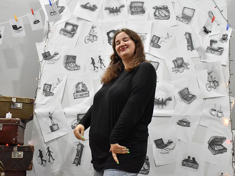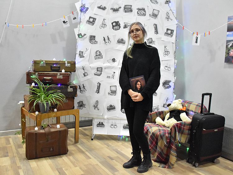 Большой вклад в создание сборника «Мой чемодан» вложил супруг Алёны Илья. Он проиллюстрировал каждое стихотворение минималистичным рисунком. Все его работы можно было увидеть в зале, на открытках.