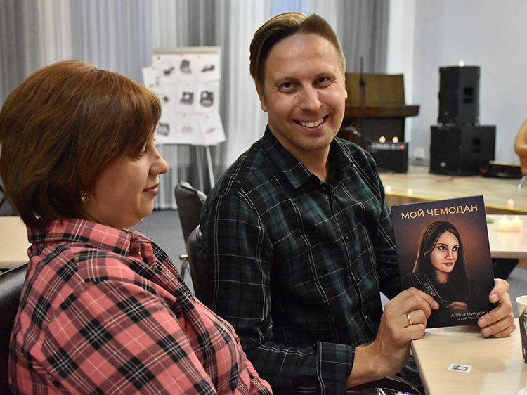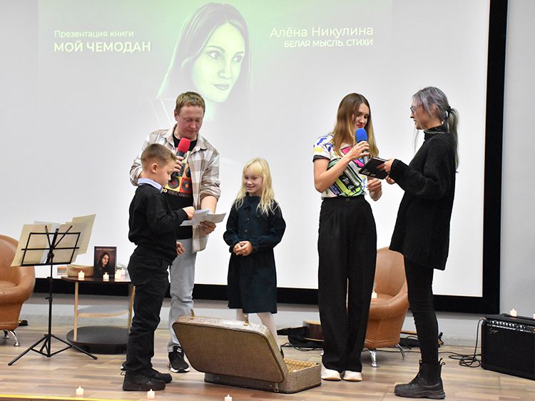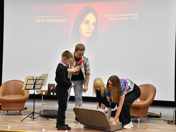 Автор стихов из сборника «Мой чемодан» – Алёна Никулина, детский логопед. В основном она ведёт занятия онлайн, для неё публичное «живое» выступление – новый и очень волнительный опыт. Но поддержать автора пришли все «свои» – близкие друзья, родные и коллеги-поэты. Друзья, которые не смогли быть рядом, подключились к видеотрансляции встречи в группе «Юговка рядом» «ВКонтакте».
