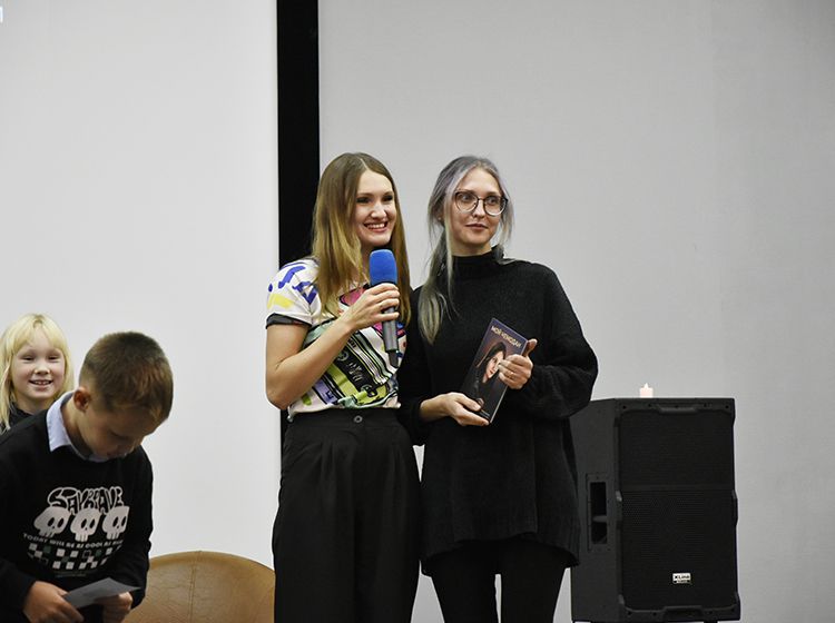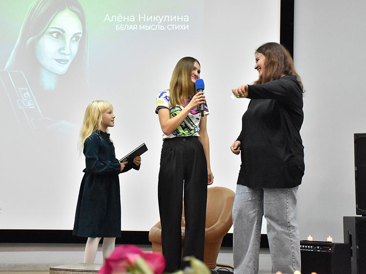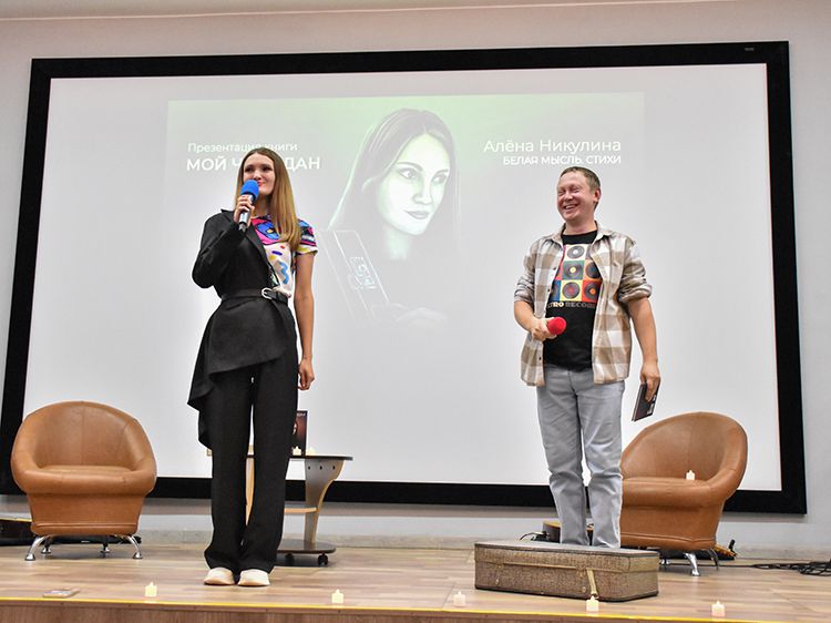 – Эта книга не была бы такой прекрасной, настолько красочной и чёрно-белой, если бы не чудесные иллюстрации моего мужа Ильи, который рисовал их долгими вечерами. Выходи скорей сюда и спасай меня, пожалуйста, – с улыбкой обратилась Алёна к супругу.