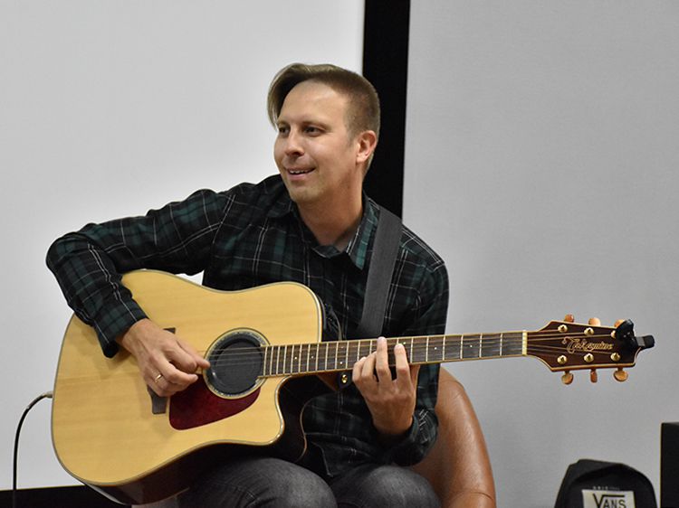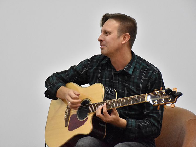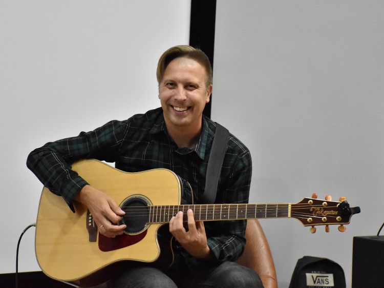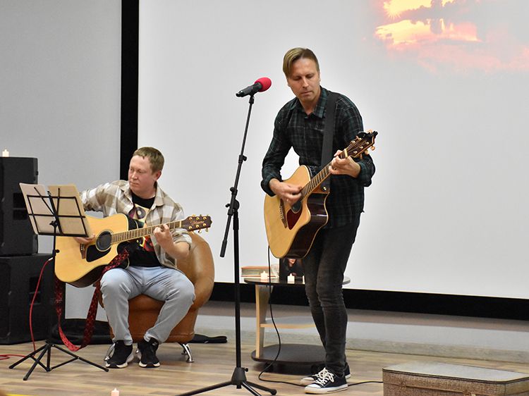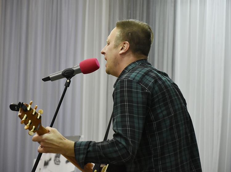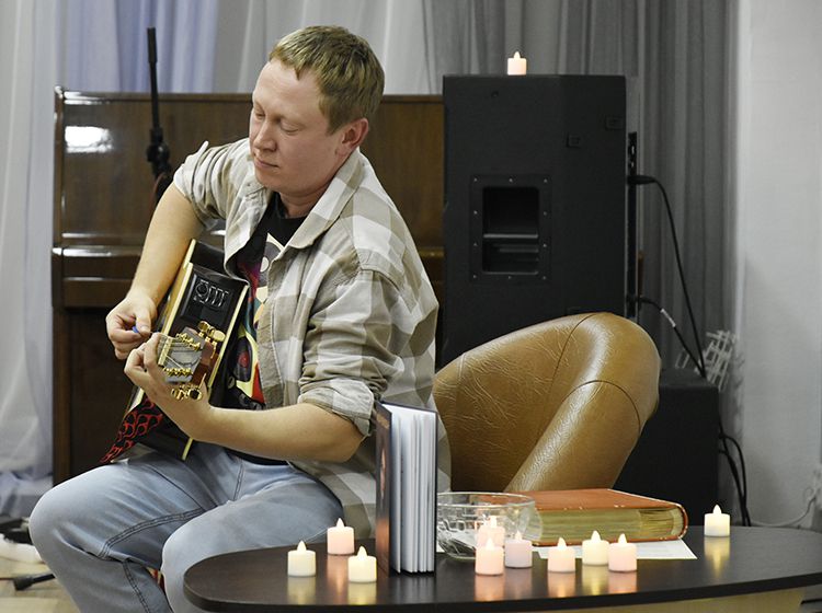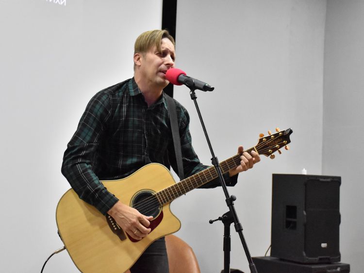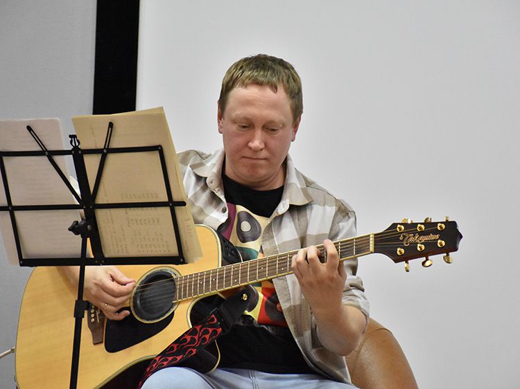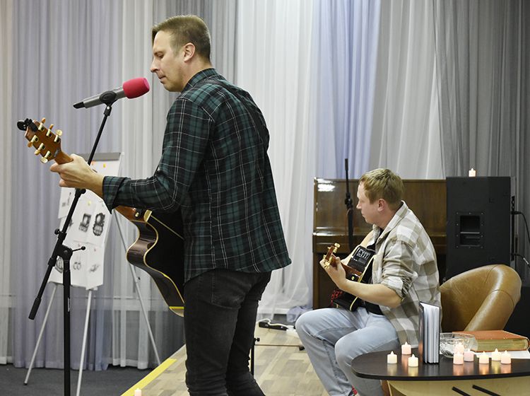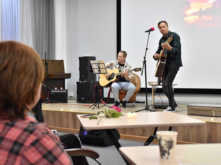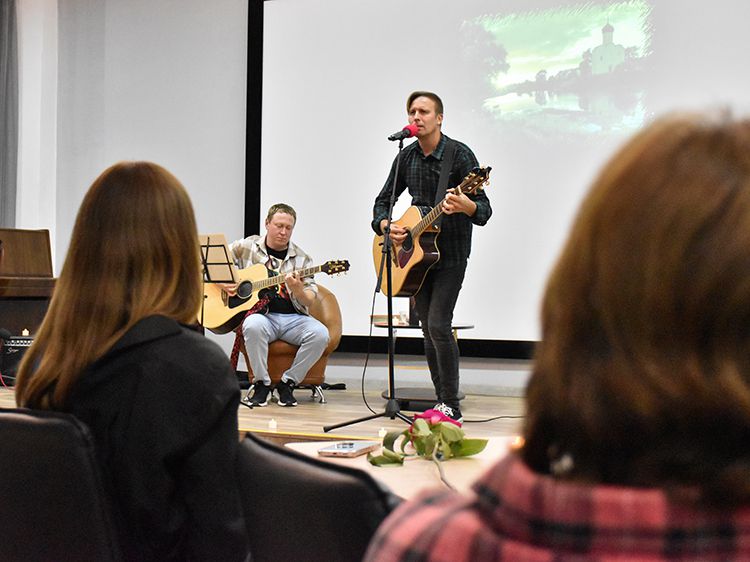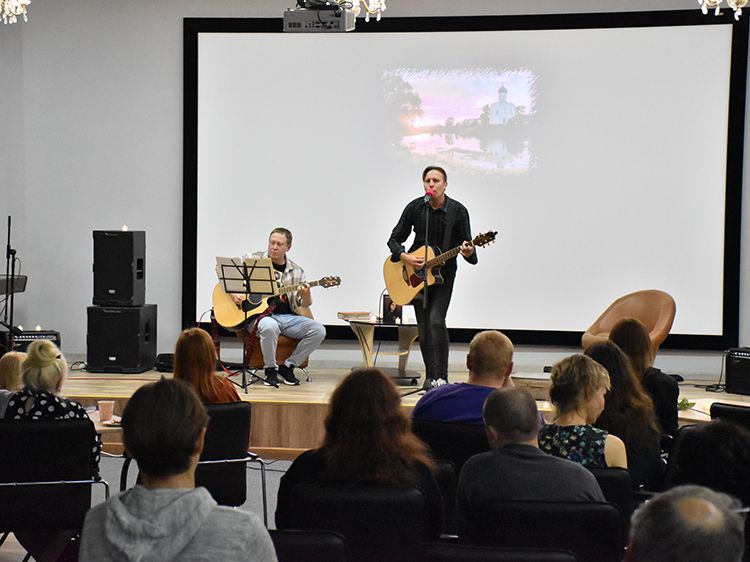 – Наш чемоданчик, рок-андеграундный, всё время разный. Иногда он бывает дикий и драйвовый. В зависимости от того, какой концерт, какая публика. Иногда бывает веселый и бесшабашный, иногда очень лирический. Как сегодня в Юговке. Эта библиотека очень важна и дорога мне ещё со времен студенчества. А потом мы стали играть здесь концерты, благодаря Илье, который проводит в Юговке летний семейный акустический фестиваль «Бряк-Фест», – рассказал Игорь и вместе с Ильёй исполнил новые песни и старые добрые хиты группы «Рок-Фронт».