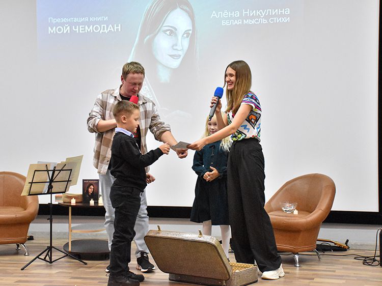 Всех гостей презентации ждали сюрпризы. В завершение встречи Алёна и Илья провели розыгрыш призов. Счастливчики выиграли сборник «Мой чемодан» и авторские открытки с иллюстрациями из книги и стихами на обороте.