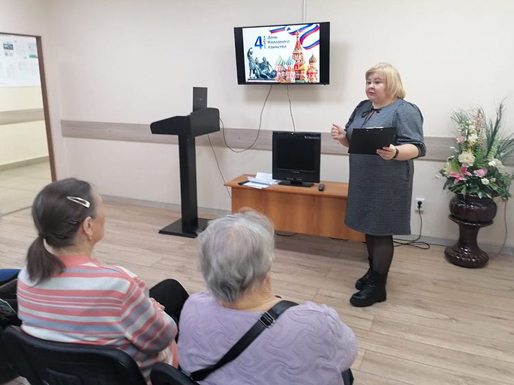 Специалисты Юговки посетили в Кургане Центр общения старшего поколения и провели информационный час «День народного единства».