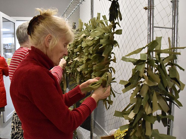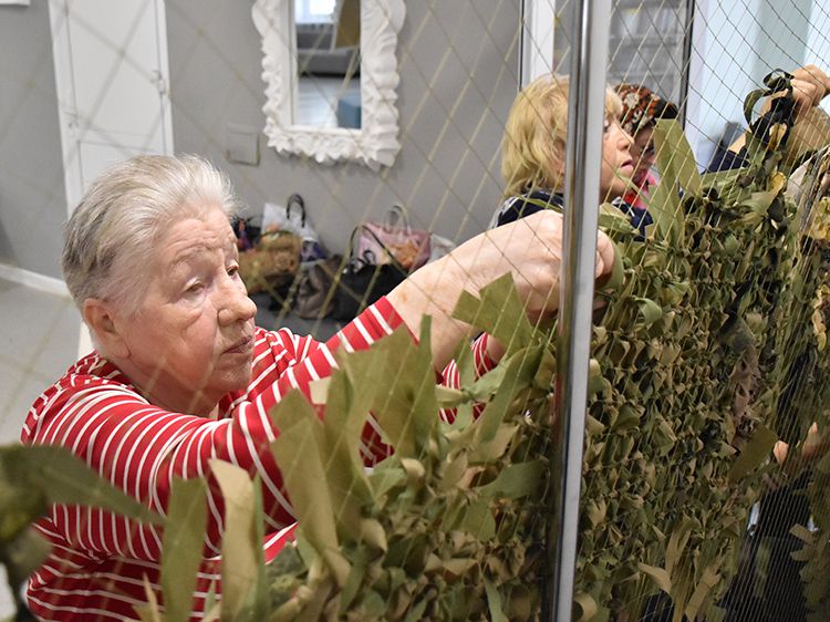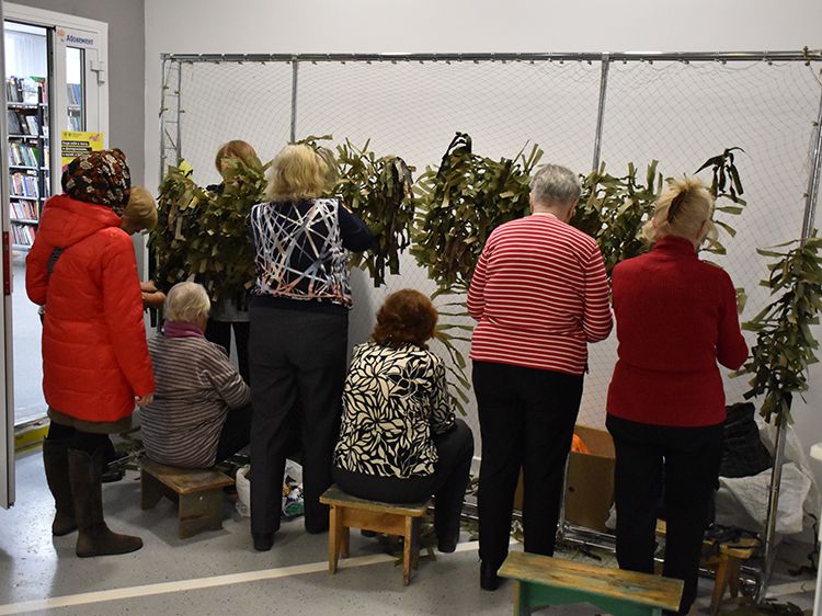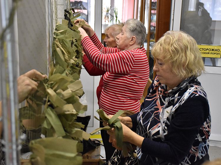 А сегодня волонтёры Центра общения старшего поколения вновь пришли в Юговку и приняли участие в плетении маскировочной сети.