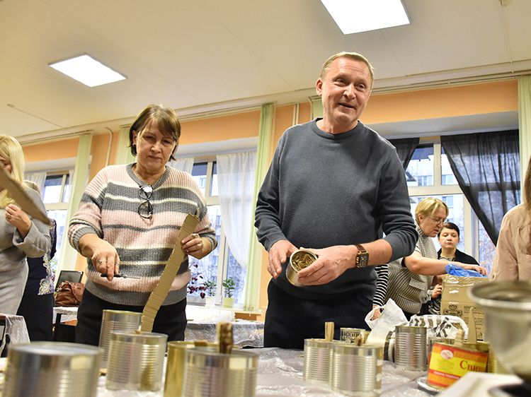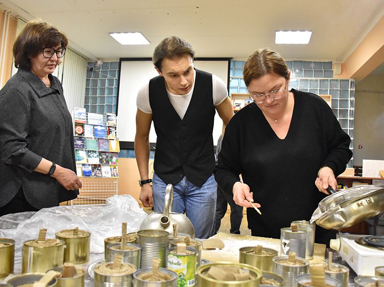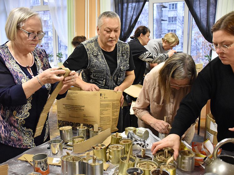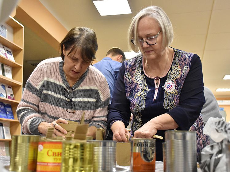 К группе волонтёров присоединились и молодые читатели, которые оказались в библиотеке в это время. После своего моноспектакля к работе подключился артист Московского государственного детского музыкального театра имени Наталии Сац Руслан Офрин. Все старались внести свою частичку помощи нашим бойцам.