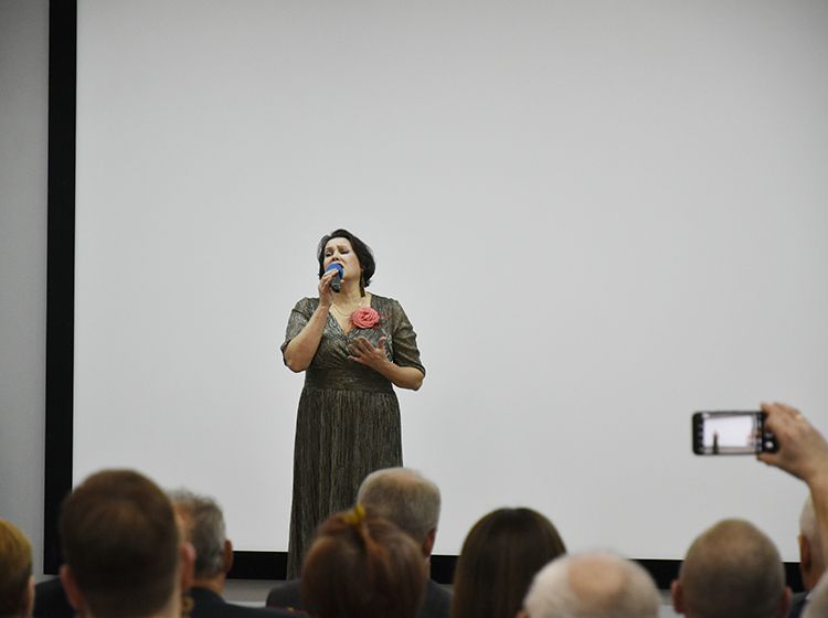 Гости поздравляли виновников торжества, звучали стихи. Музыкальный подарок преподнесли вокалисты Наталья Дягилева и Валерий Мельников.