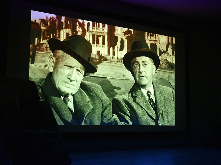 — Уже в третий раз в этом зале Юговки мы будем переживать эмоции, которые вызовет этот фильм. Фильм родился на основе телевизионной пьесы, которую создал американский драматург Эбби Манн, работавший, в основном, для телевидения. В 1959 году вышла постановка, а уже через 2 года зрители увидели фильм Стенли Крамера. Главную роль – роль судьи, который должен разбираться в том, как творилось судопроизводство в Третьем Рейхе, играет великий американский актёр Спенсер Трейси. В Юговке есть книги, посвящённые его творчеству. Почитайте, узнаете много интересного, в том числе и о переживаемых его героями событиях.А о фильме, я думаю, сам фильм скажет, — отметил перед началом показа ведущий проекта «Жизнь за пределом жизни», киновед Валерий Алексеев.