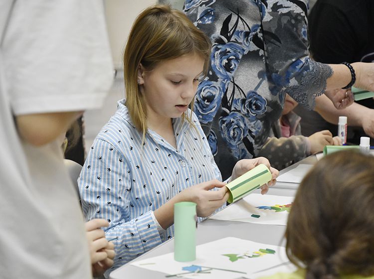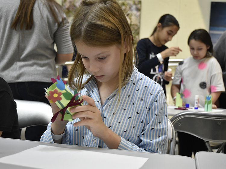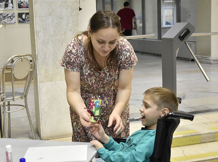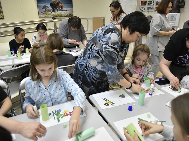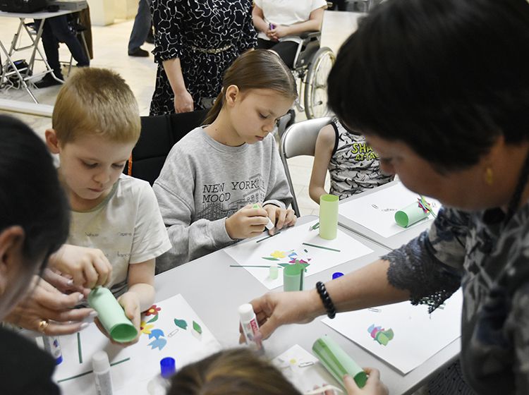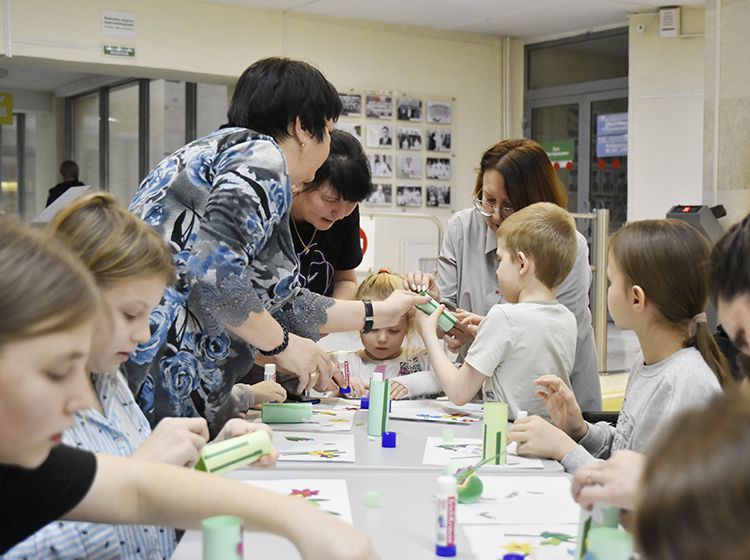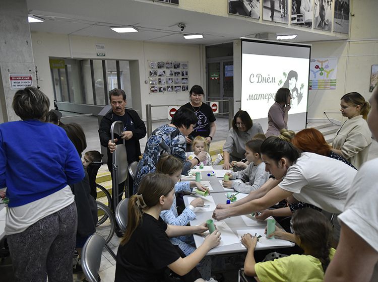 Библиотекари зала гуманитарной литературы провели интерактивную игру – ребята отгадывали мультфильмы про мам, вспоминали стихи про наших любимых родителей. Специалисты музыкально-нотного зала вместе с ребятами пели песни про наших милых мам. Затем ребята смастерили подарки своими руками – букетики из цветной бумаги. Поделки, конечно, подарили мамам