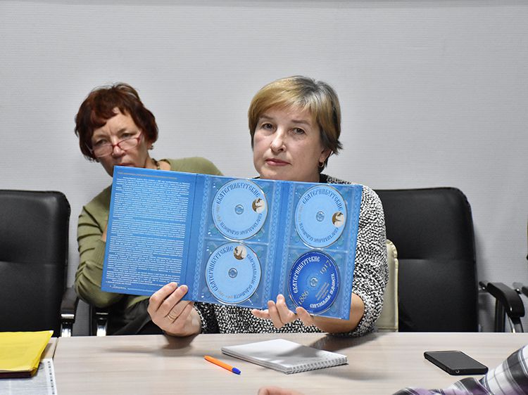 Завершилось заседание Зауральского генеалогического общества приятным моментом: Михаил Суханов преподнёс библиотеке имени А. К. Югова подарок – электронное факсимильное издание «Екатеринбургские епархиальные ведомости 1886–1917 гг.» – аннотированный библиографический указатель, выпущенный издательством «Баско». Оформление и программирование издания представлено четырьмя DVD-дисками, содержащими 500 файлов общим объёмом 24 Гб. На сегодняшний день это самая полная электронная версия «Ведомостей», хранящаяся в фондах библиотек и архивов Свердловской области. Теперь электронное издание пополнило фонд библиотеки имени А. К. Югова. Ознакомиться с ним можно в читальном зале.