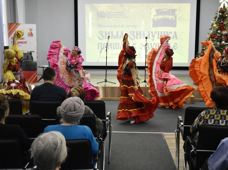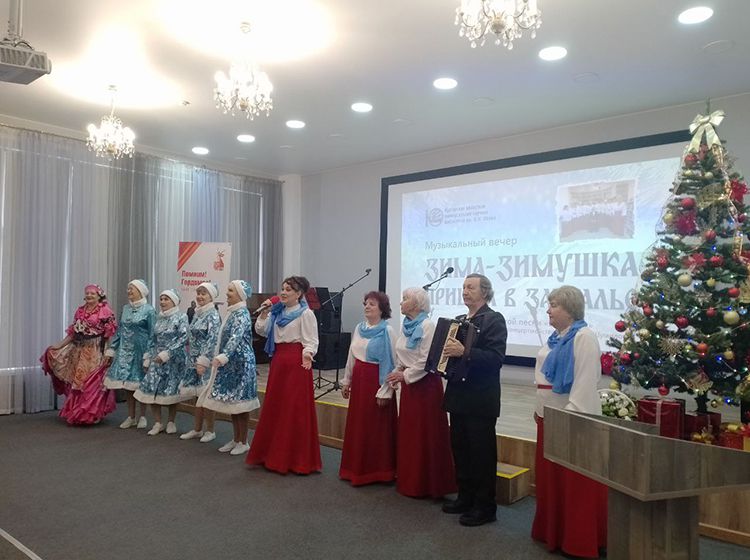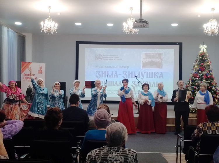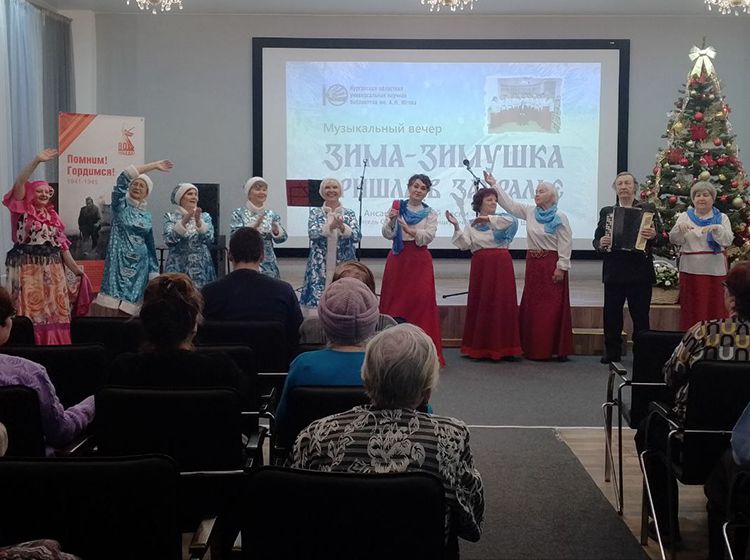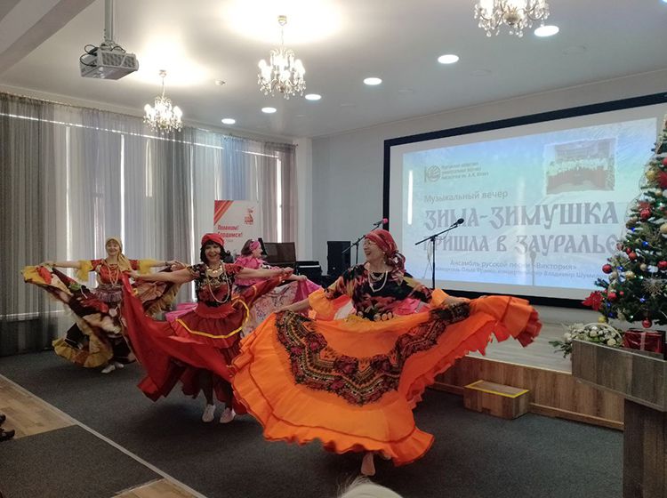 Юговка и «Виктория» дружат давно, читатели библиотеки с нетерпением ждут новых концертных программ ансамбля. На этот раз коллектив представил зрителям предновогодний концерт «Зима-зимушка пришла в Зауралье». В исполнении ансамбля, солистов и женской группы прозвучали композиции о зиме, о любви, красоте зимней природы и, конечно, чувствах. Зрители услышали песни: «Есть такая земля», «Белым снегом», «Снег летит», «Потолок ледяной», «Ой, завьюжило, запорошило», «Ой, калина», «Гармонь моя», «А он ничей» и, конечно, весёлые частушки.