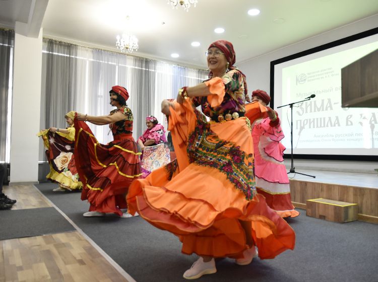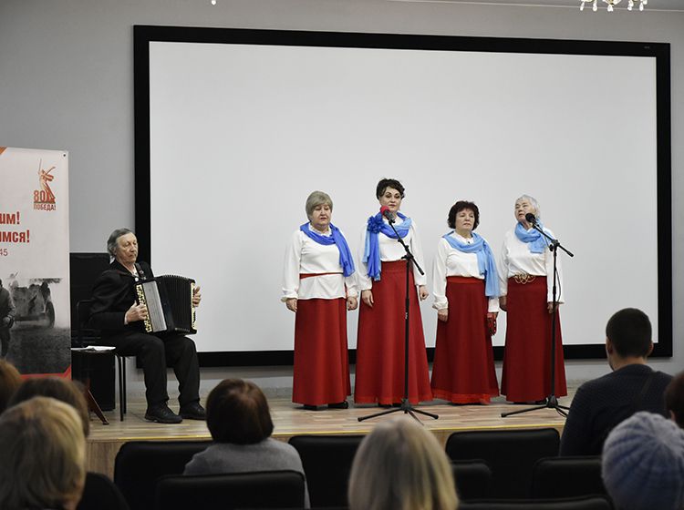Музыкальная гостиная Юговки собрала в Концертном зале библиотеки любителей красивых русских песен и звонких голосов. Подарить хорошее настроение читателям библиотеки и всем курганцам в гостиную пришли вокалистки ансамбля русской песни «Виктория». Руководитель коллектива – Ольга Франко, концертмейстер – Владимир Шумилов.