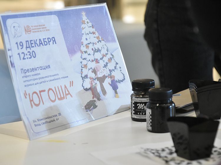 Знакомство с «Югошей» на книжной ярмарке совпало с добрым праздником – 13 декабря в России отмечается День медведя. Создатели журнала провели квиз – задавали гостям ярмарки вопросы о косолапых героях литературных произведений. За правильные ответы – призы: закладки и раскраски с медведем Югошей.