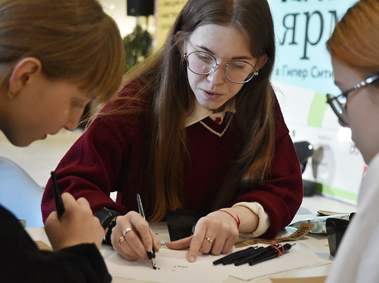 Юговка провела интерактивную площадку для гостей Всероссийской книжной ярмарки. Все желающие смогли поучаствовать в мастер-классе «Русская вязь». Взрослые и дети учились каллиграфии: писали старославянские буквы, слова и целые предложения пером и чернилами. Сотрудники Юговки делились секретами мастерства, практическими советами. Участники выводили пером афоризмы и мотивационные фразы на закладках и открытках. Каждый унёс свою работу домой на память.