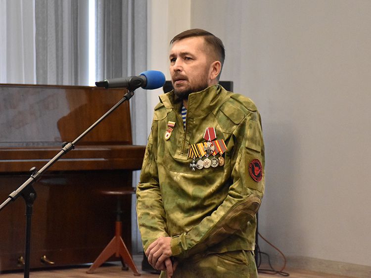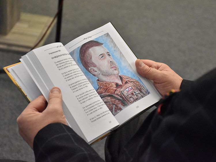 Многие стихи Сергей Шевчугов посвятил своим близким, не обошла его внимание и тема СВО. Стихотворение «Медальон» могло бы стать гимном для всех бойцов, оно посвящено другу и сослуживцу, капитану полиции в отставке, ветерану МВД России Роману Сажину, который тоже приехал сегодня на презентацию книги.