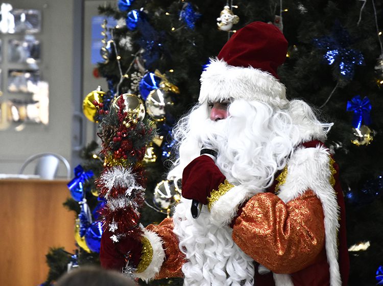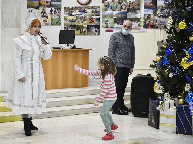 Ребят и их родителей поздравили любимые герои – Дед Мороз и Снегурочка. Дедушка веселил детей играми, шуточными стихами, весёлыми историями и занимательными заданиями на внимательность. Многие ребята захотели сами прочитать Деду Морозу выученные праздничные стишки