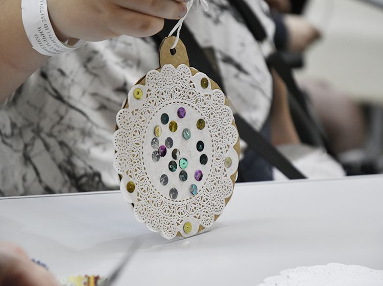 Чудеса продолжились в Мастерской Деда Мороза. Гостям предложили принять участие в мастер-классах. Одни предпочли сделать своими руками ажурный новогодний шар, другие – новогоднюю ёлочку.