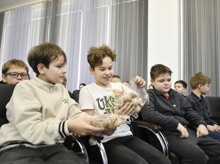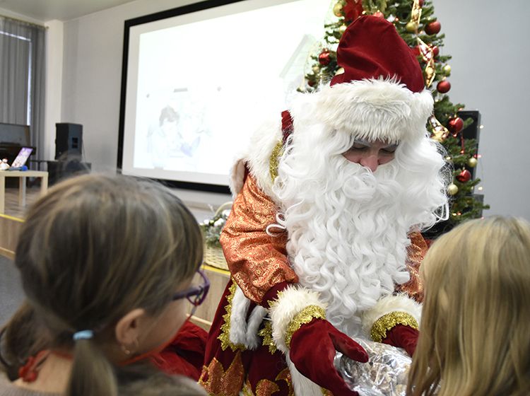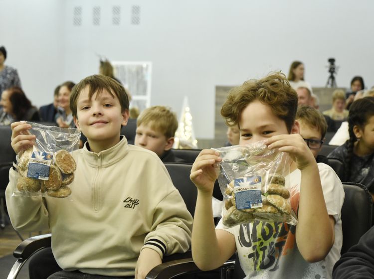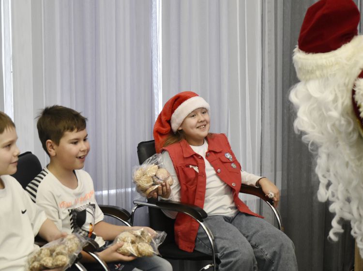 Поздравить ребят пришёл и главный новогодний волшебник – Дед Мороз! Гости пели песенки, танцевали и получили в подарок пряники от друга и партнёра Юговки – «Курганского Хлебокомбината № 1».