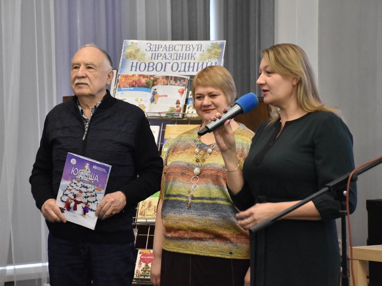 – Наконец-то мы дожили до второго номера нашего любимого журнала для семейного чтения «Югоша»! Как и обещали, этот номер посвящён новогоднему празднику. Новогодние приключения Югоши ждут всех, кто откроет журнал. Библиотека теперь не только продвигает чтение, ведь мы сами являемся амбассадорами чтения. А наш Югоша в виде журнала быстрее всех доходит своими маленькими ножками до юных читателей от 6 до 12 лет. Но мы надеемся, что читатели «Югоши» – это вся семья, ведь в журнале есть отличные материалы для мам и пап, бабушек и дедушек, – рассказала главный редактор журнала, заместитель директора библиотеки имени А. К. Югова Ольга Бабушкина.