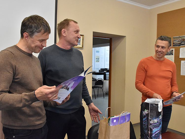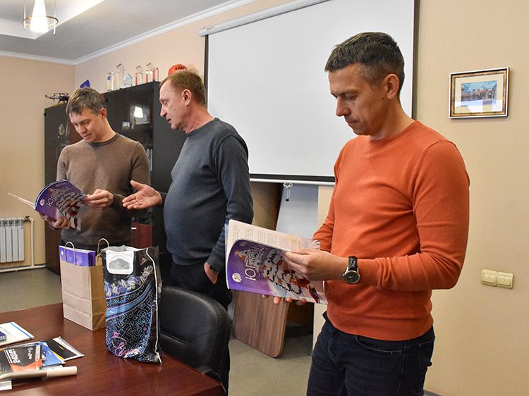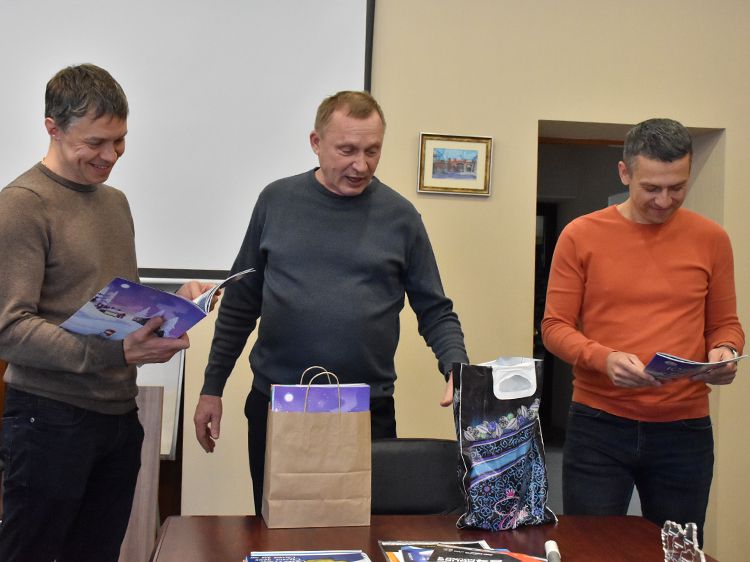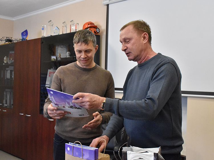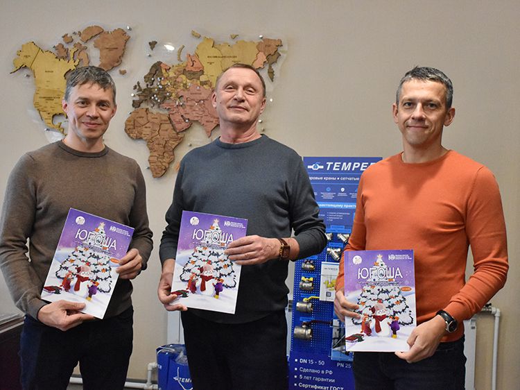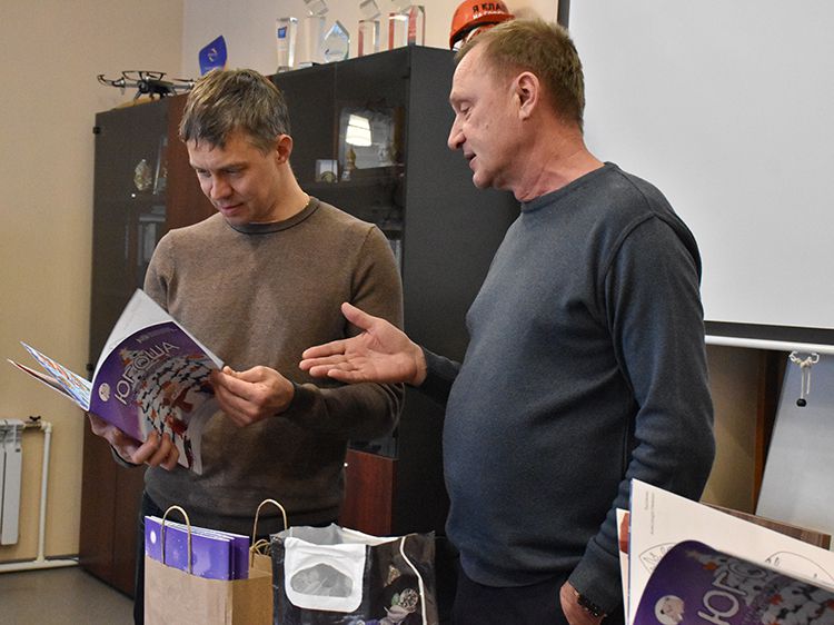 Юговка приехала в компанию для того, чтобы поблагодарить за сотрудничество и помощь Юговке в уходящем году, а также подарить экземпляры новогоднего журнала «Югоша» и фирменные сувениры.