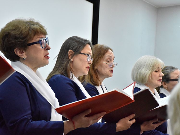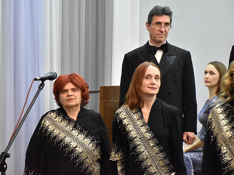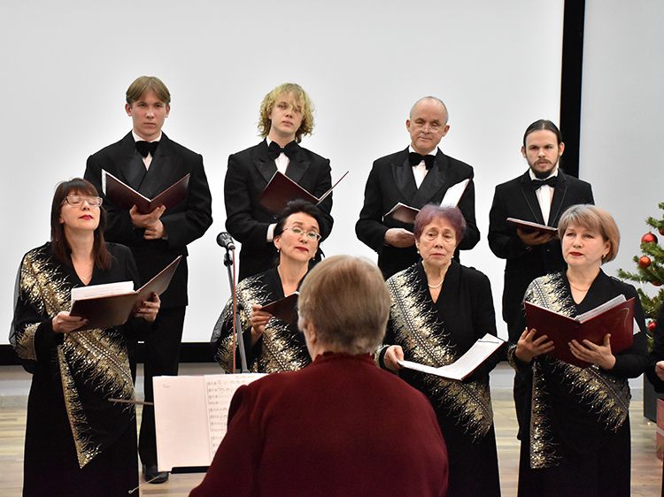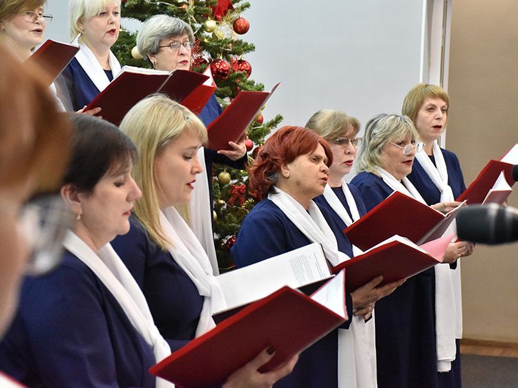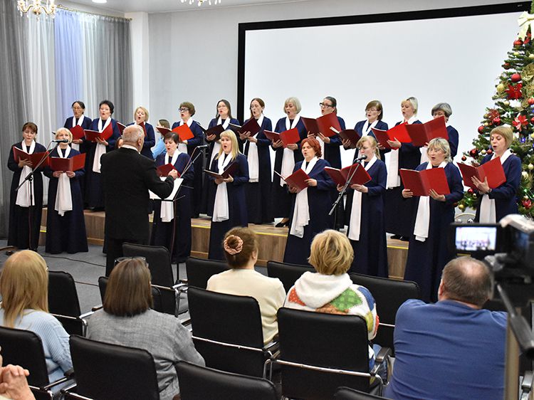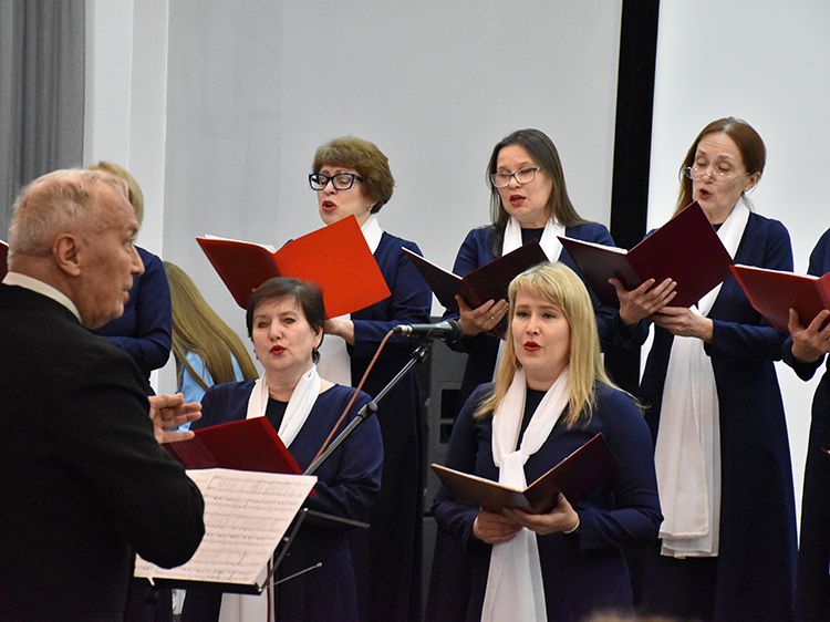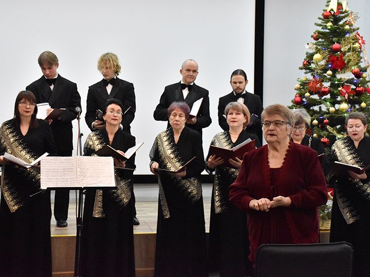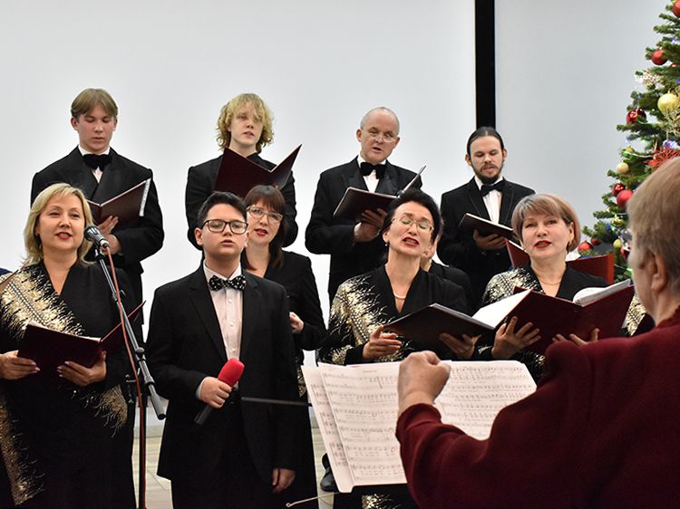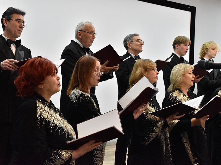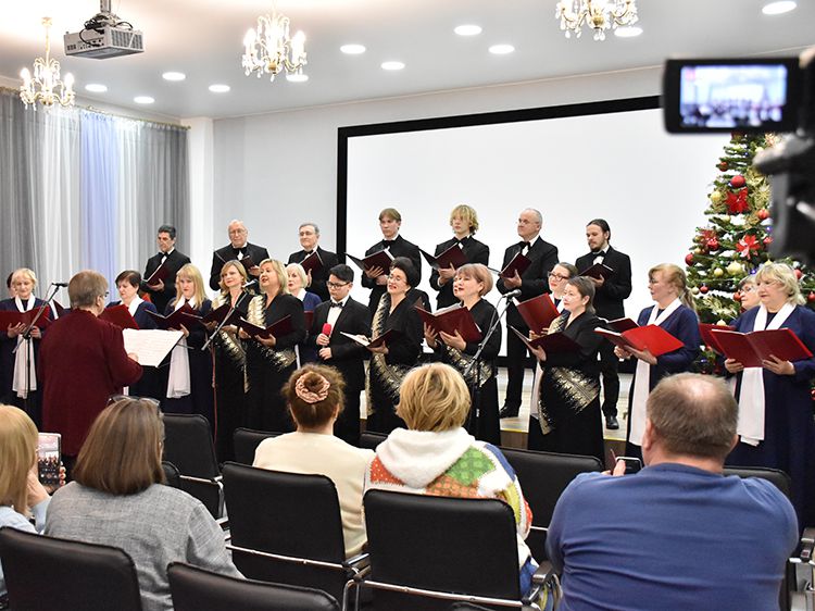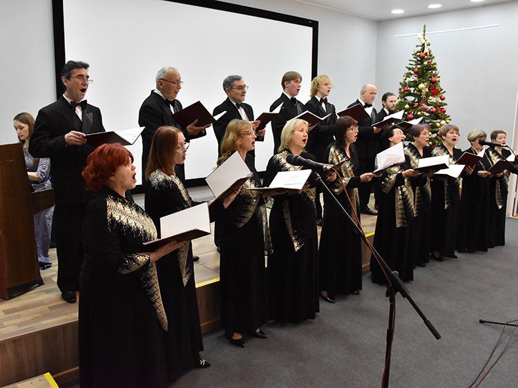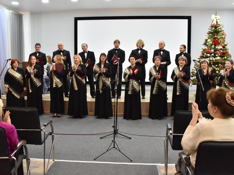 В Концертном зале Юговки Хор педагогов города Кургана «Созвучие» и Камерный хор Национального медицинского центра травматологии и ортопедии имени академика Г. А. Илизарова встречали горожан на музыкальной встрече «Зимние узоры».