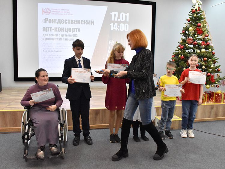 В Концертном зале библиотеки состоялся праздник «Рождественская арт-терапия». На творческую встречу пришли семьи, воспитывающие детей с ограниченными возможностями здоровья.