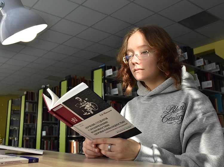 Анна рассказала, что в Юговке у неё нет любимого зала, нравится каждый. Приходит школьница каждую неделю и большую часть времени проводит в зале гуманитарной литературы или в зале Президентской библиотеки.