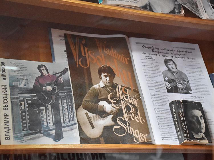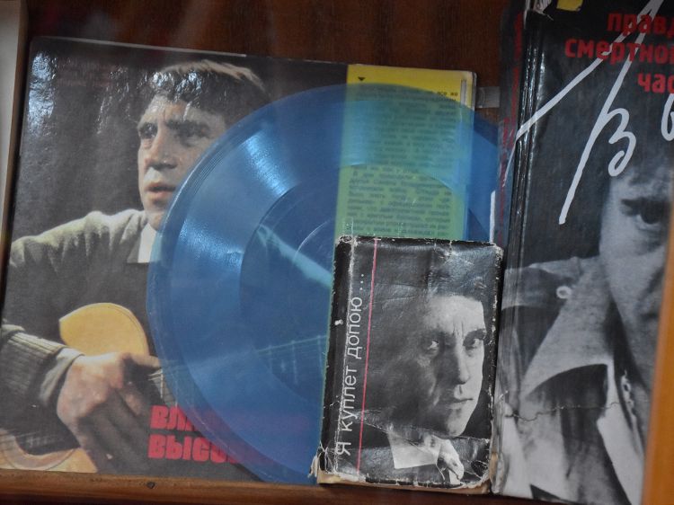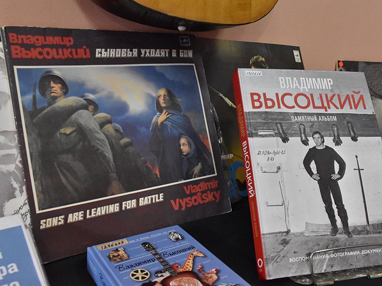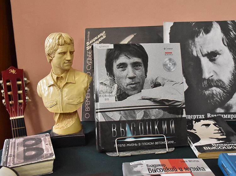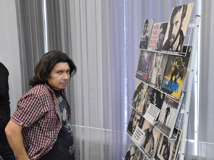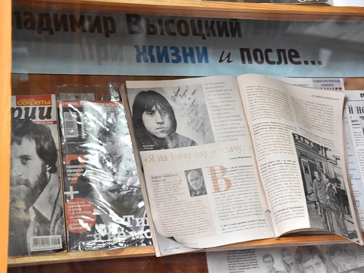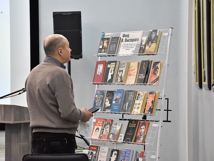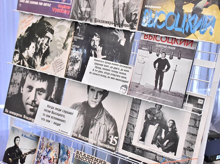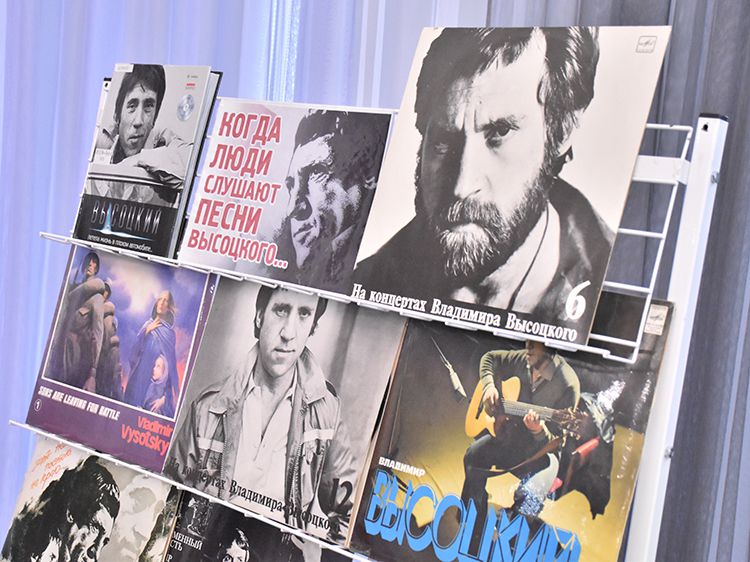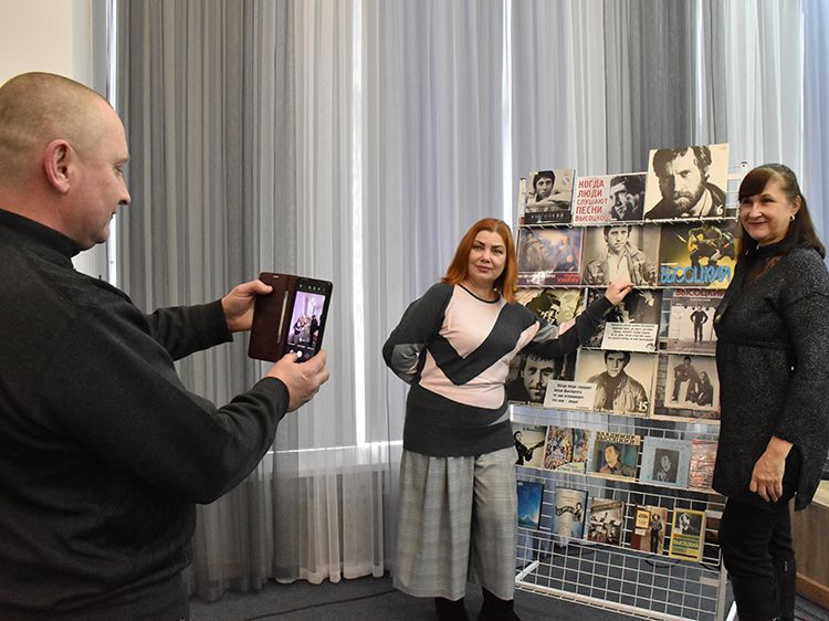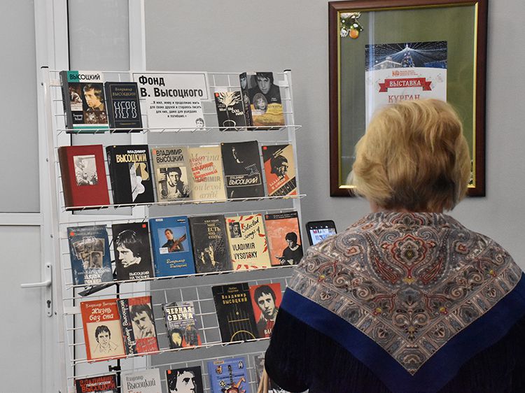 Поклонники Высоцкого не спешили расходиться, общались с исполнителями, делились новостями, фотографировались. А после охотно шли на выставку «Когда люди слушают песни Высоцкого, то они вспоминают, что они – люди» в зале музыкально-нотной литературы. Гости знакомились с экспонатами из Фонда Владимира Высоцкого, где хранятся грампластинки, небольшие бюсты поэта, самиздатовские книги, газетные и журнальные вырезки, аккуратно собранные в альбомы, открытки и книги. Так некоторые курганские меломаны смогли послушать грампластинку «Автопортрет», подаренную Ниной Максимовной Высоцкой в июле 1983 года Вячеславу Григорьевичу и Евгению Аванесовым, которые и передали её Фонду Высоцкого в Юговке. Для сегодняшнего слушателя почти незнакомый носитель – аудиокассета – тоже заняла своё место в экспозиции. А также книги о Владимире Высоцком и его стихи и песни из фондов Юговки.
