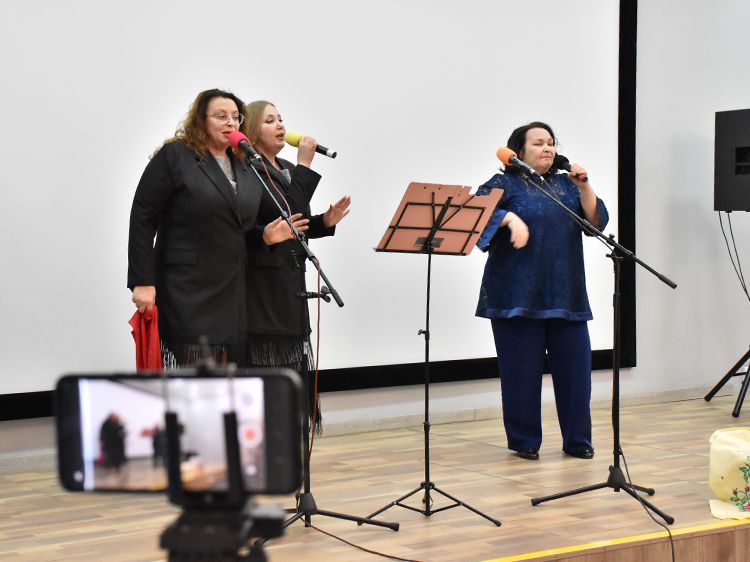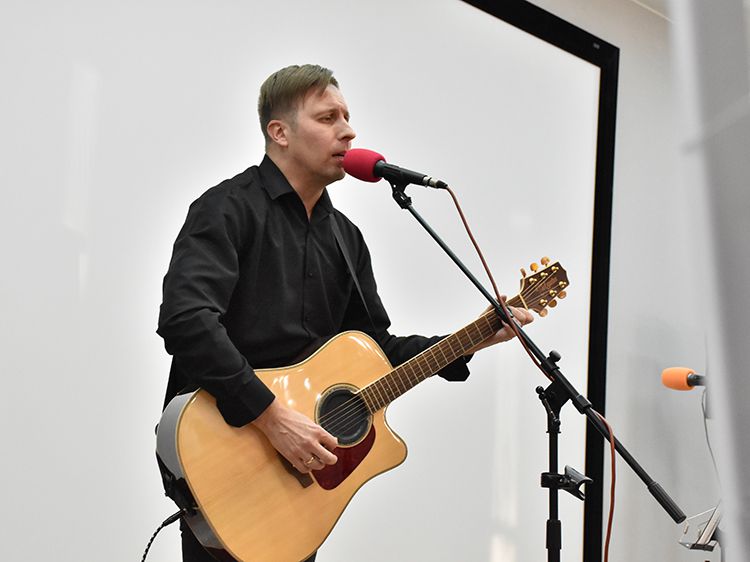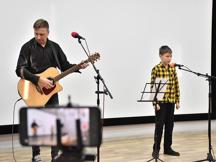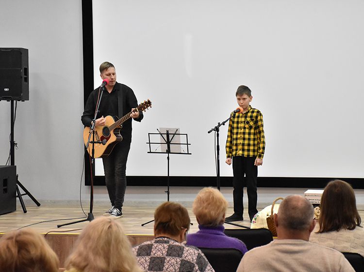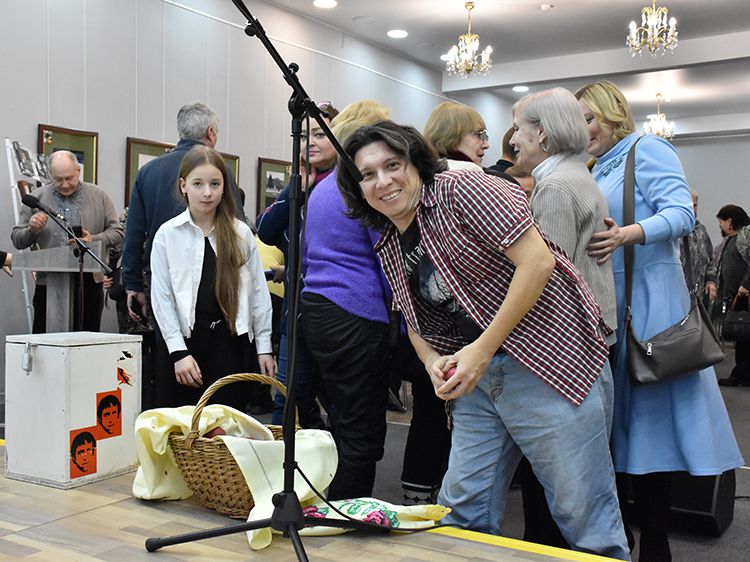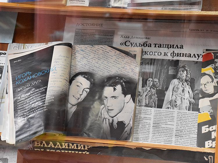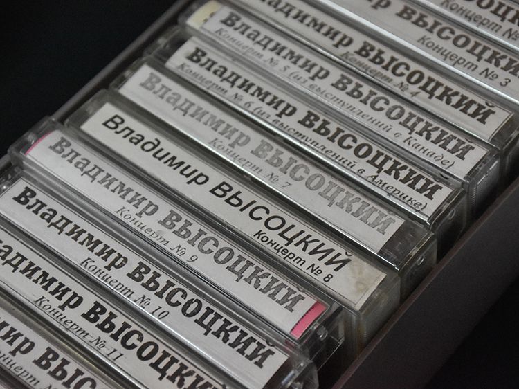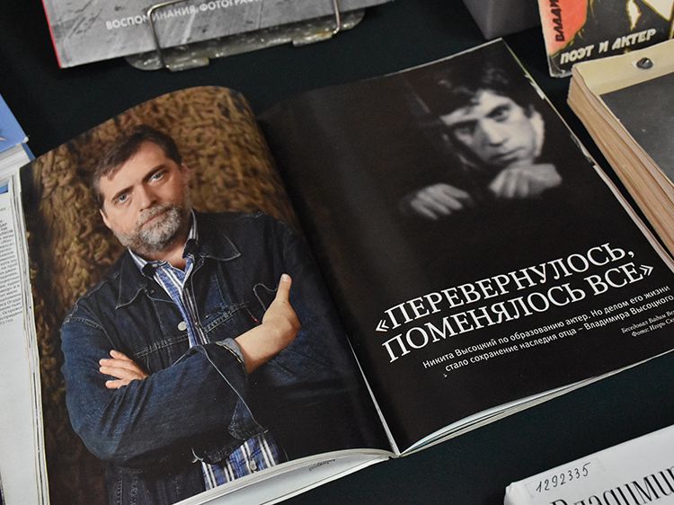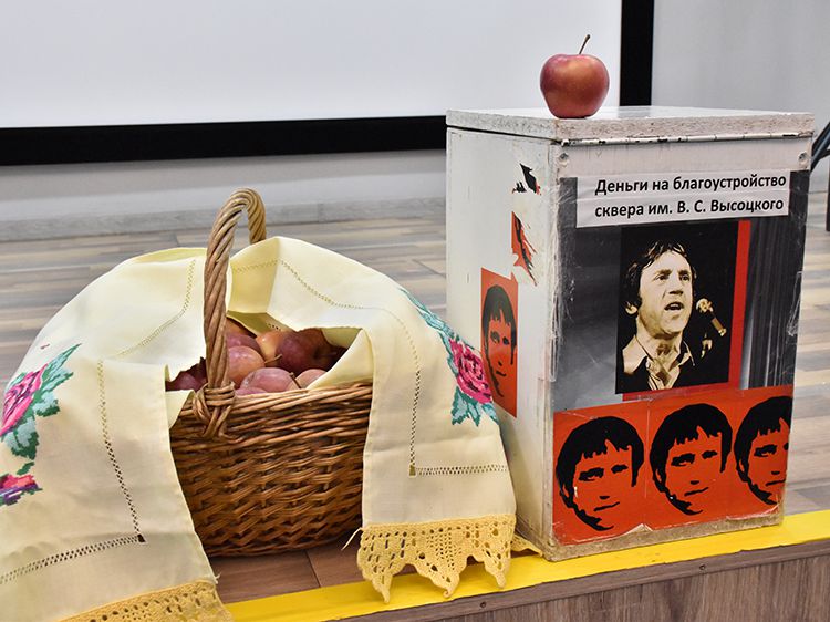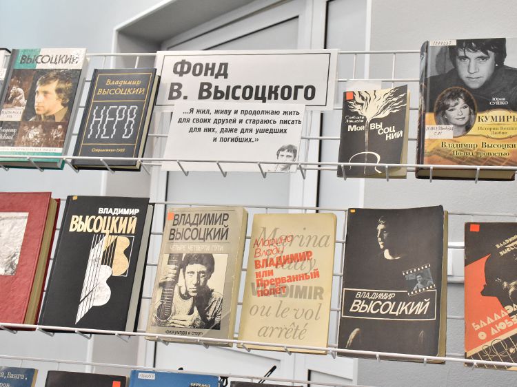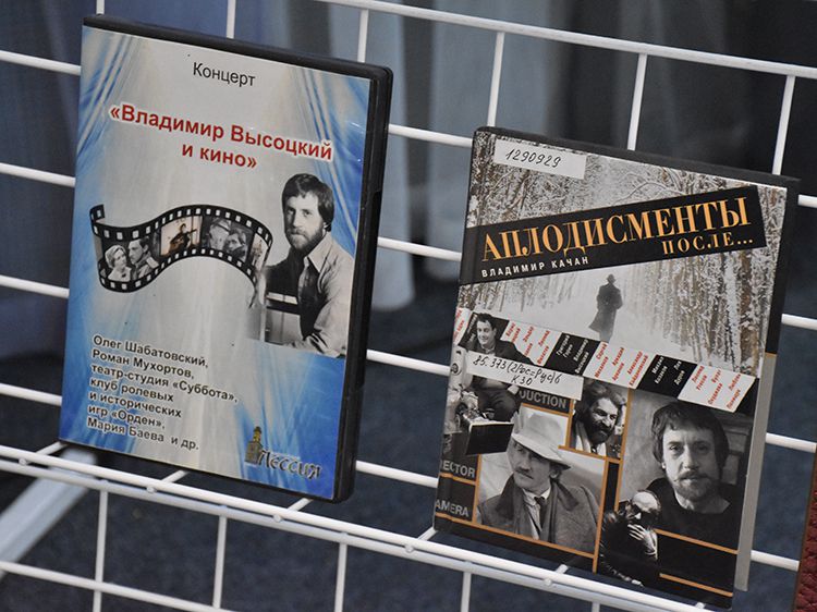 Поклонники Высоцкого не спешили расходиться, общались с исполнителями, делились новостями, фотографировались. А после охотно шли на выставку «Когда люди слушают песни Высоцкого, то они вспоминают, что они – люди» в зале музыкально-нотной литературы. Гости знакомились с экспонатами из Фонда Владимира Высоцкого, где хранятся грампластинки, небольшие бюсты поэта, самиздатовские книги, газетные и журнальные вырезки, аккуратно собранные в альбомы, открытки и книги. Так некоторые курганские меломаны смогли послушать грампластинку «Автопортрет», подаренную Ниной Максимовной Высоцкой в июле 1983 года Вячеславу Григорьевичу и Евгению Аванесовым, которые и передали её Фонду Высоцкого в Юговке. Для сегодняшнего слушателя почти незнакомый носитель – аудиокассета – тоже заняла своё место в экспозиции. А также книги о Владимире Высоцком и его стихи и песни из фондов Юговки.