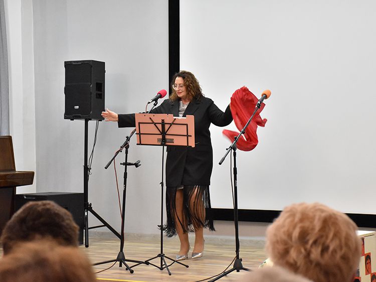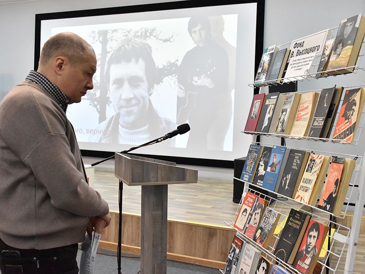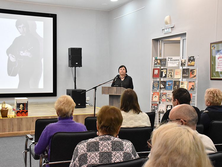 – В России любят и чтут своих истинных кумиров. Эта любовь не иссякает и теперь, спустя много лет после смерти барда. Сегодня на сцену Юговки выйдут артисты – рассказать о Владимире Высоцком, о его сложной и многогранной жизни, прочитать стихи, спеть его песни, – открыла встречу организатор и ведущая концерта, заведующая залом музыкально-нотной литературы Светлана Бойко.