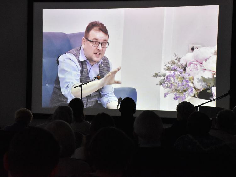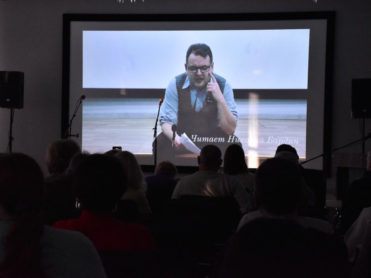 На экране зрители увидели кадры хроники, где свои стихи читает сам Владимир Семёнович, фрагменты из фильмов и театральных сцен, фотографии разных лет.