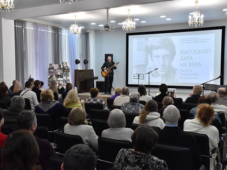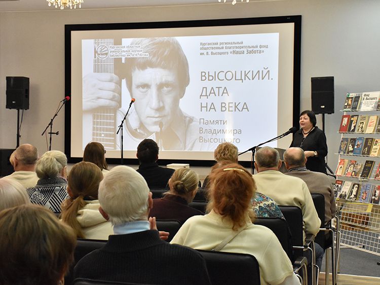 Несмотря на мороз за окном, юговский зал полон: поклонники творчества советского музыканта, поэта, актёра Владимира Высоцкого пришли на традиционный концерт «Высоцкий. Дата на века». Творческий вечер памяти Владимира Семёновича в канун его дня рождения организовали и провели областная библиотека имени А. К. Югова совместно с Курганским благотворительным фондом имени В. Высоцкого «Наша Забота».