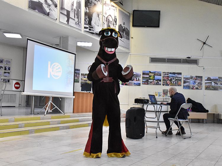 Праздник продолжил главный герой программы – Конь-Огонь, который играл с мальчиками и девочками в интерактивные игры, разучивал стишки и, конечно, с удовольствием фотографировался со всеми желающими. Роль символа года исполнил сотрудник Юговки, актёр и музыкант Николай Бардин.