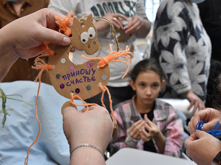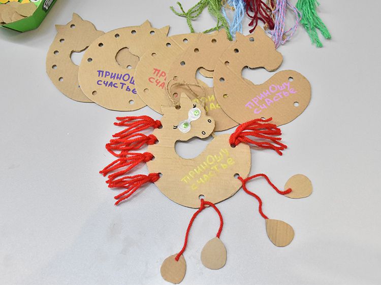 Тема весёлых лошадок продолжились на мастер-классе. Участникам предложили своими руками сделать сувенир «Лошадка на удачу». Дети мастерили своих лошадок вместе со взрослыми, проявляя фантазию. Каждая поделка получилась уникальной – ни одна грива, ни один хвост у ребят не повторились.