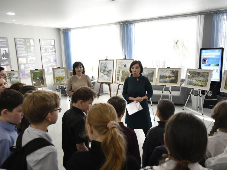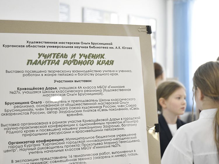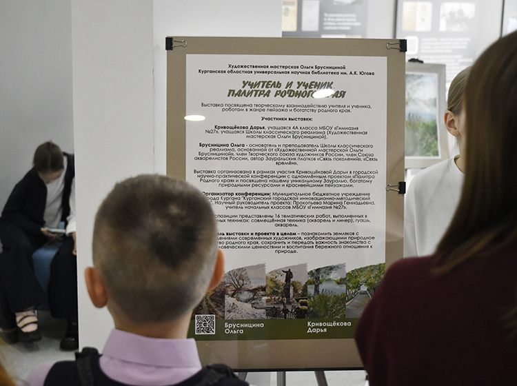 Экспозиция «Учитель и ученик. Палитра родного края» – это 16 работ в жанре пейзажа, раскрывающих природное богатство Зауралья. Выставку специально подготовили ко Дню рождения Курганской области, который будет праздноваться 6 февраля, а также в рамках участия Дарьи Кривощёковой в городской научно-практической конференции «Палитра родного края».