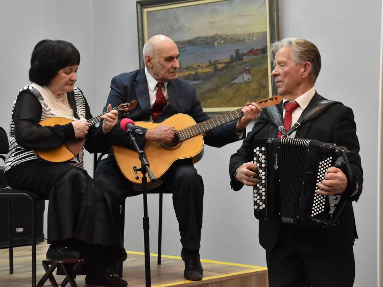 Ведущая концерта, председатель культурно-массовой комиссии Курганского городского Совета ветеранов Татьяна Исакова рассказала зрителям о жизни и творчестве Геннадия Заволокина, о продолжателях дела его жизни – детях Анастасии и Захаре, о любви к народной музыке и особом почитании автором гармони как символе народной души.