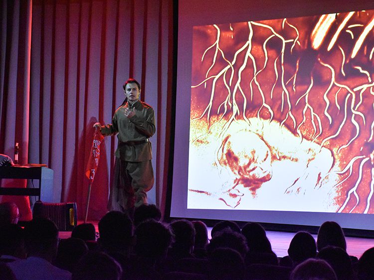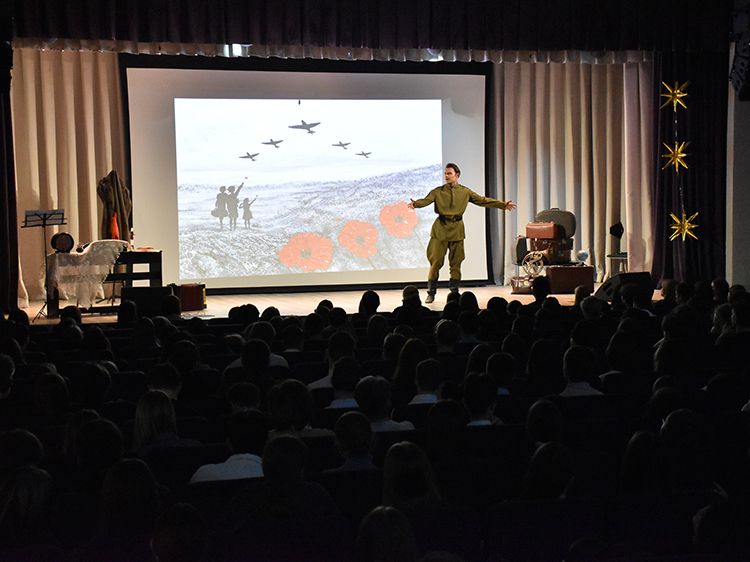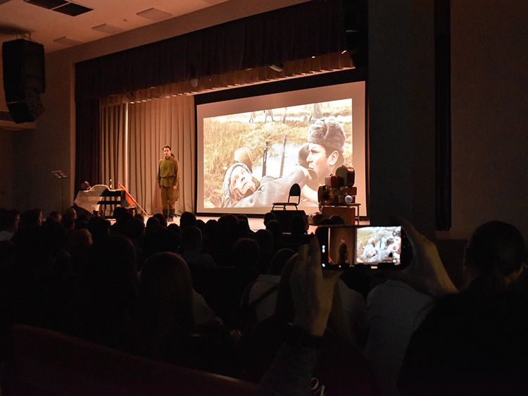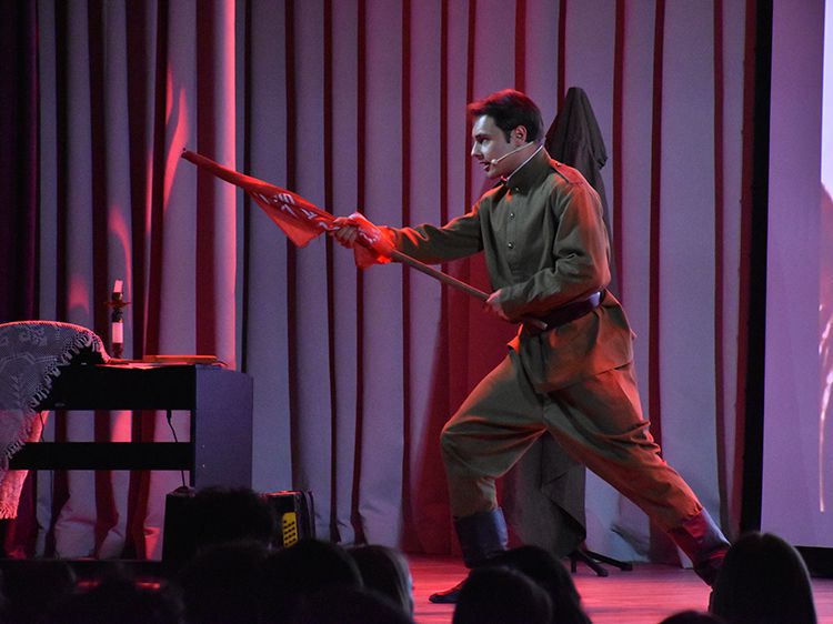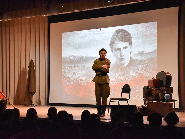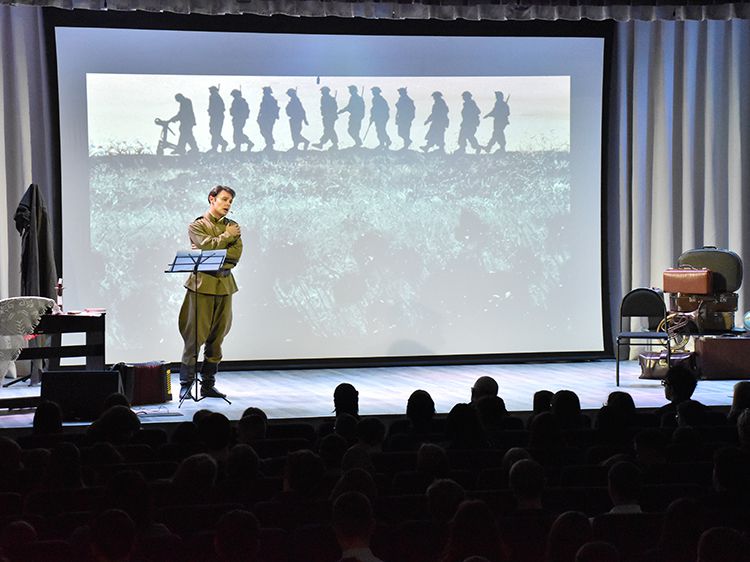 Моноспектакль, посвящённый Дню образования Курганской области, увидели сегодня около 400 зрителей. Гости узнали истории наших земляков, которые самоотверженно защищали нашу Родину во время Великой Отечественной войны и в «горячих» точках, слушали отрывки из писем родным и фрагменты воспоминаний о тех тяжёлых днях. Подпевали всем залом знаменитые и душевные песни: «От героев былых времён», «Тальяночка», «Смуглянка».