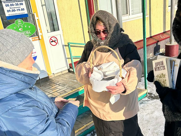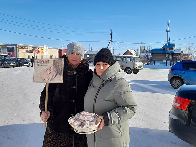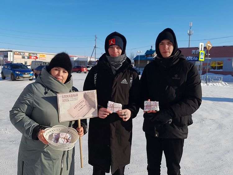 Участникам акции раздавали карточку и кусочек хлеба весом 125 грамм как символ памяти о минимальной норме выдачи в самый трудный блокадный период – зима 1941-1942 г.